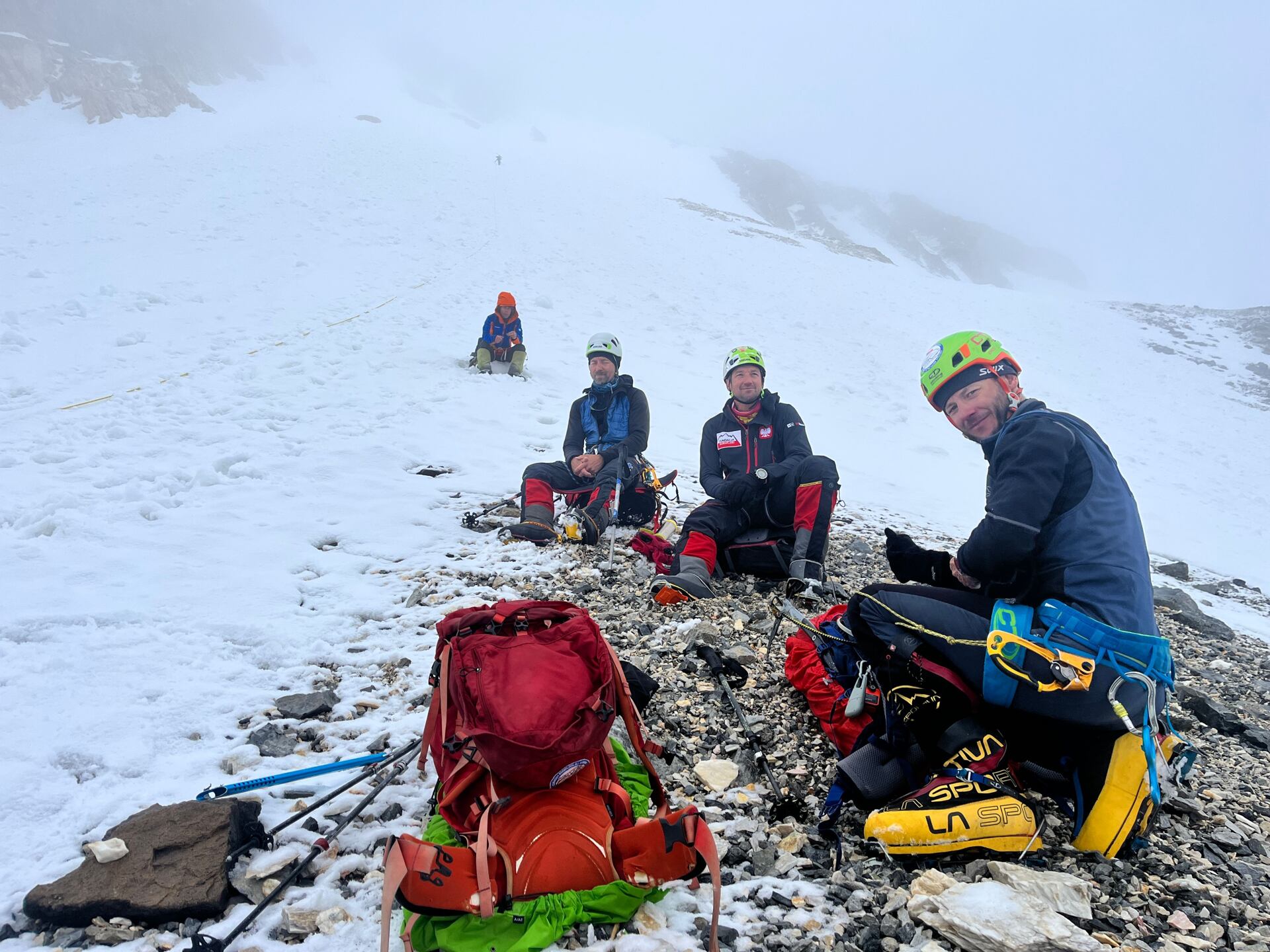 Mezi mé koně ve výpravě patřil Lukáš Dubský. V roce 2018 se mnou stál na vrcholu Nanga Parbat (8125m), ale přeci jen už má pokročilý věk a na kopec si vezl problém, který snad ani nikdy sám úplně nepřizná. Na konci července se mu mělo narodit miminko, a to na klidu při výstupu a ochotě riskovat zrovna nepřidá. Druhým mým koněm byl Tomáš Turský, dlouholetý kamarád, vynikající sportovec, bývalý elitní volejbalista, horolezec zatím spíše instantního typu. Petr Tobolák a Dušan Vrtal byla prověřená dvojice z akcí Expedition Clubu, osma měla být vyvrcholením jejich cestovatelsko horolezecké vášně.