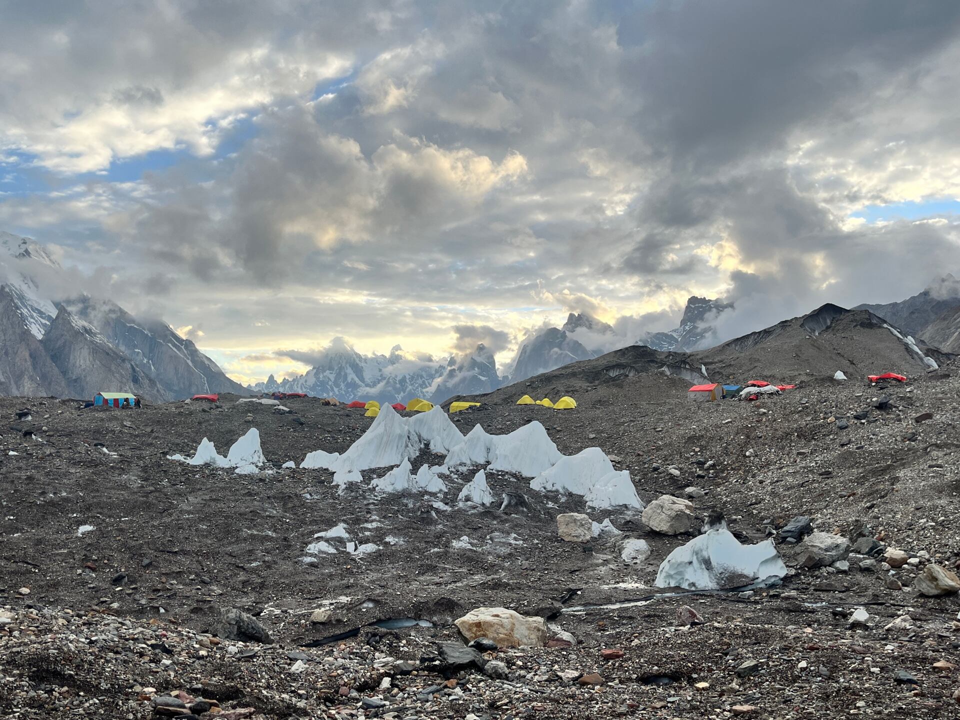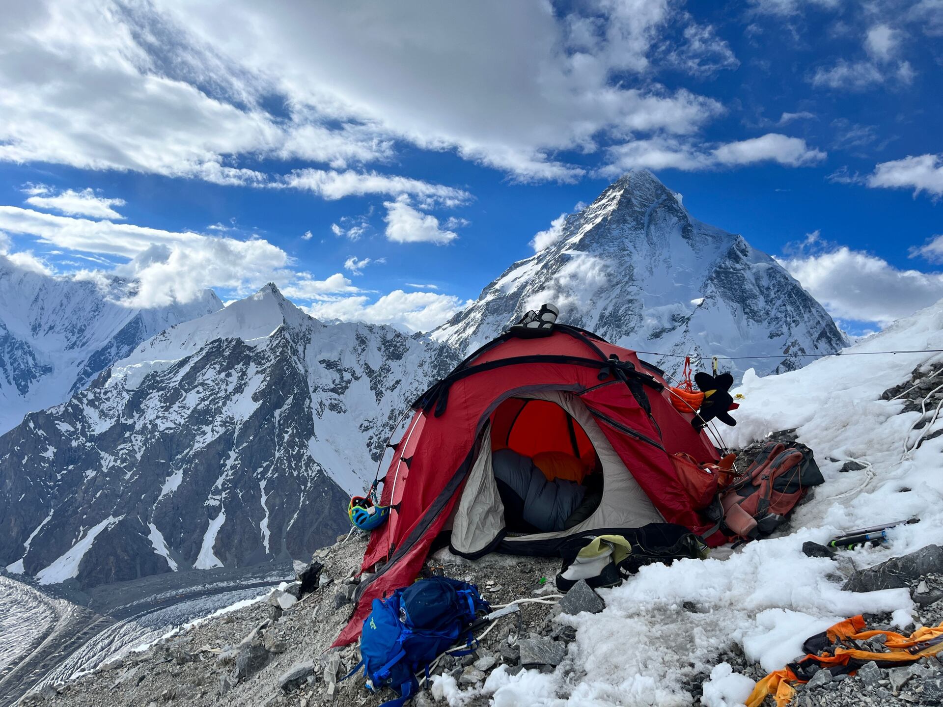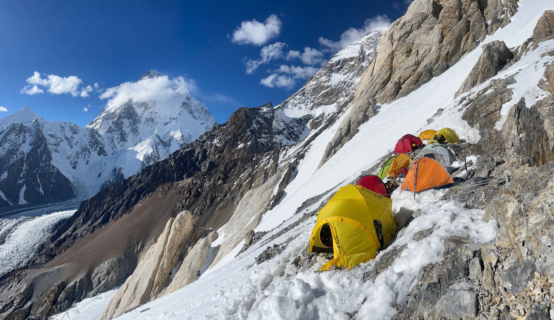 Na Broad Peaku se standardně staví tři postupné výškové tábory, C1 (5700 m), C2 (6200 m) a C3 (7000 m).
