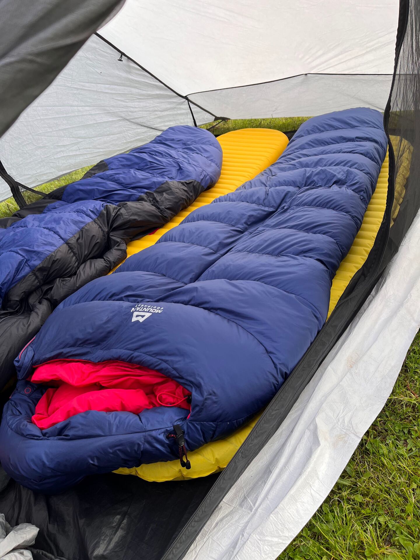 Prostor pro nohy je mírně rozšířen a je zde také upravena konstrukce spacáku. Komory jsou zde do tvaru V a peří má v těchto místech vyšší plnivost. Výsledkem je příjemný tepelný komfort i pro mě.