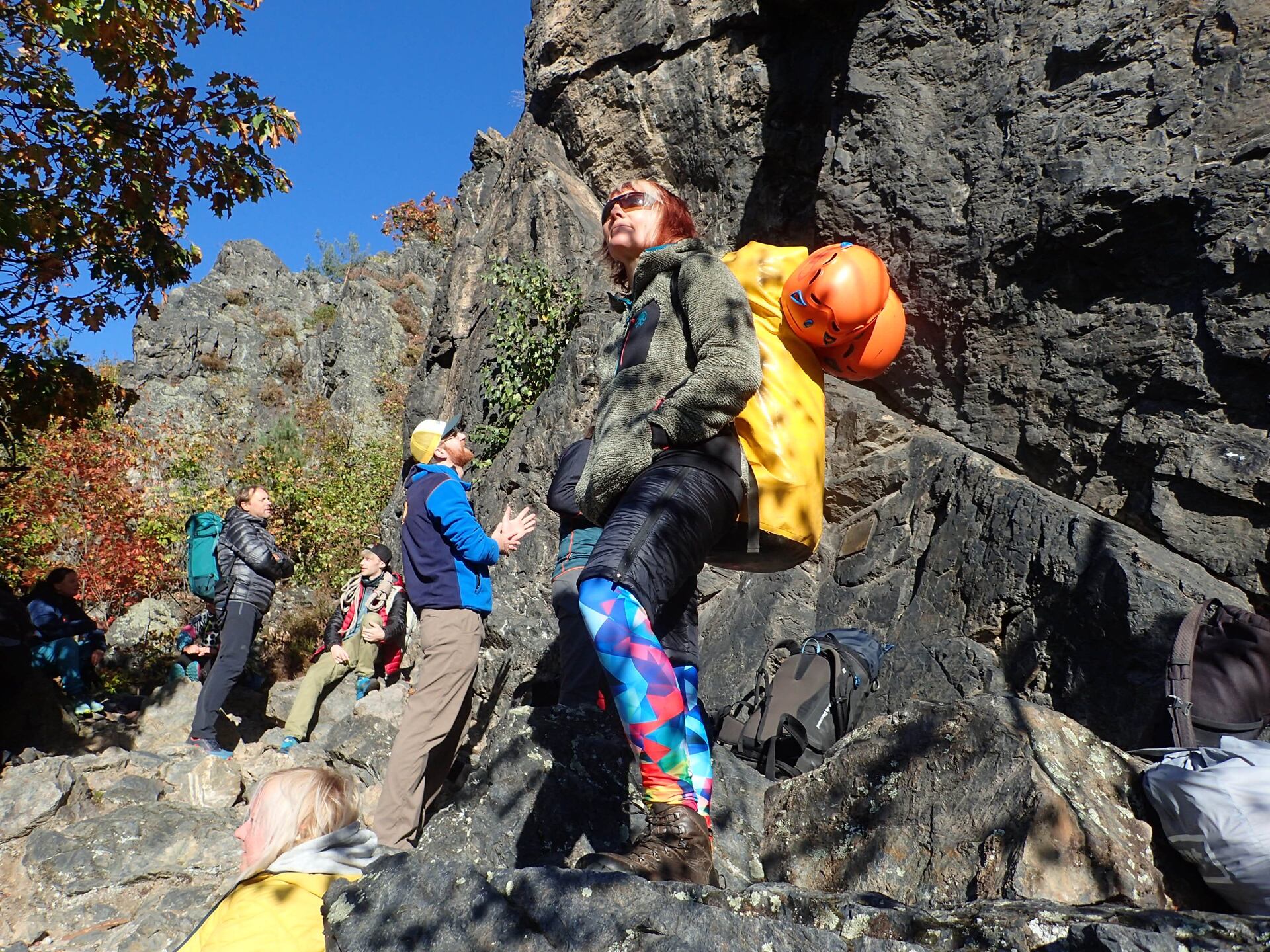 Kolegové se postupně nenápadně vytrácejí na sluníčko, mě však zima ve stínu nijak nevadí, naopak je mi v mikině Tarifa příjemně. Během výkladu na úpatí stěny skalního masivu Žabák mě ochrání i před pofukujícím větříkem. Jen sluníčko občas mikinu „přetopí“ a tak jdu na chvíli do trička.