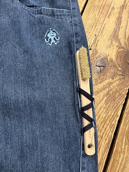Rafiki Cerro nabízejí 3 velké kapsy. Dvě se nacházejí vepředu a jedna vzadu. Do kapes se bez problému vejdou ruce, telefon či peněženka, představivost je zcela na vás. Na levé nohavici máme my lezci pomocí gumičky vyřešené uchycení kartáčku na čištění chytů.