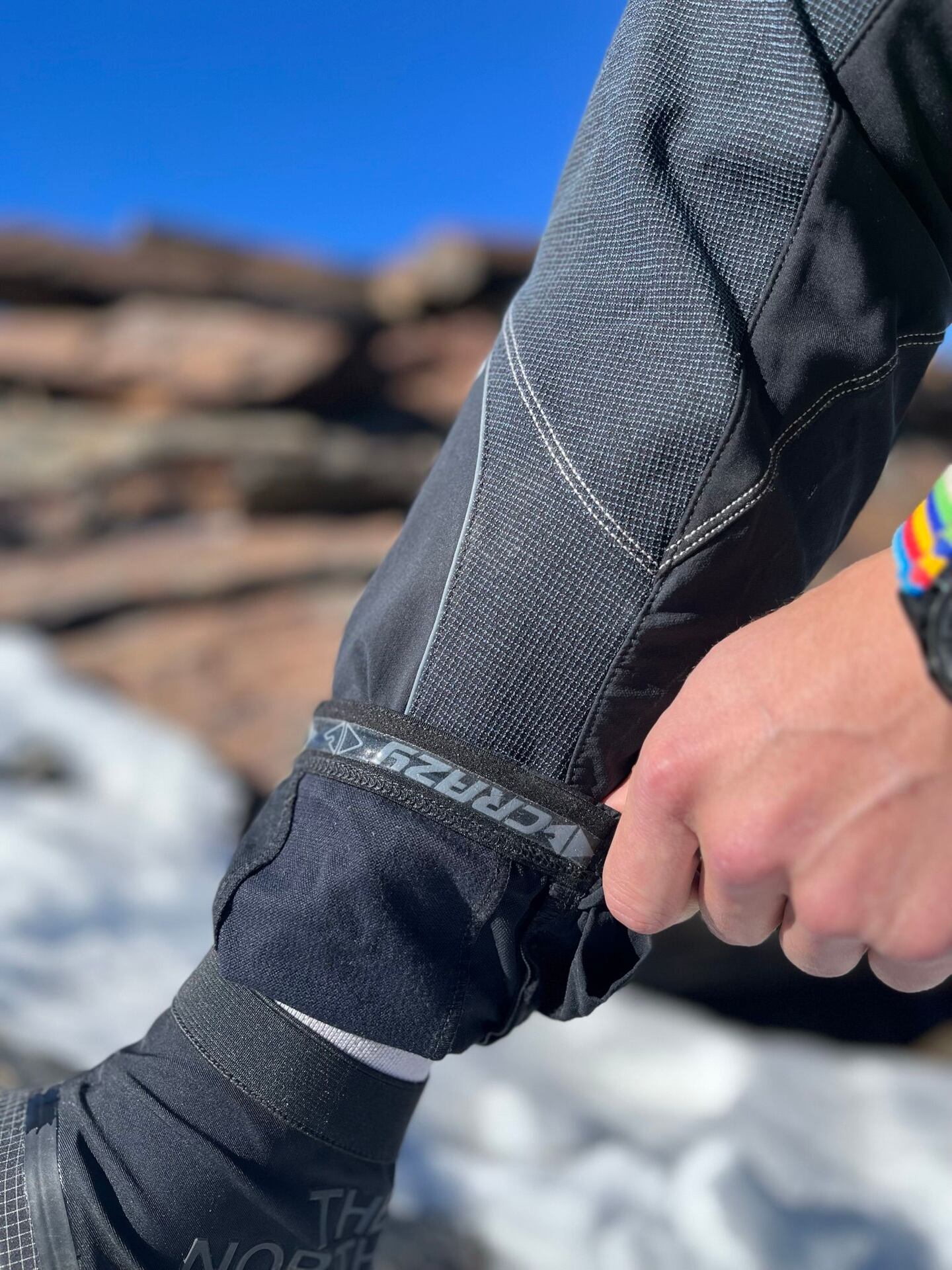 Na zakončení nohavic samozřejmě nechybí zip, díky kterému se kalhoty mohou rozšířit a pojmout skelety skialpových bot. Samotný lem je poté opatřen silikonovým páskem, aby se kalhoty nevyhrnovaly.