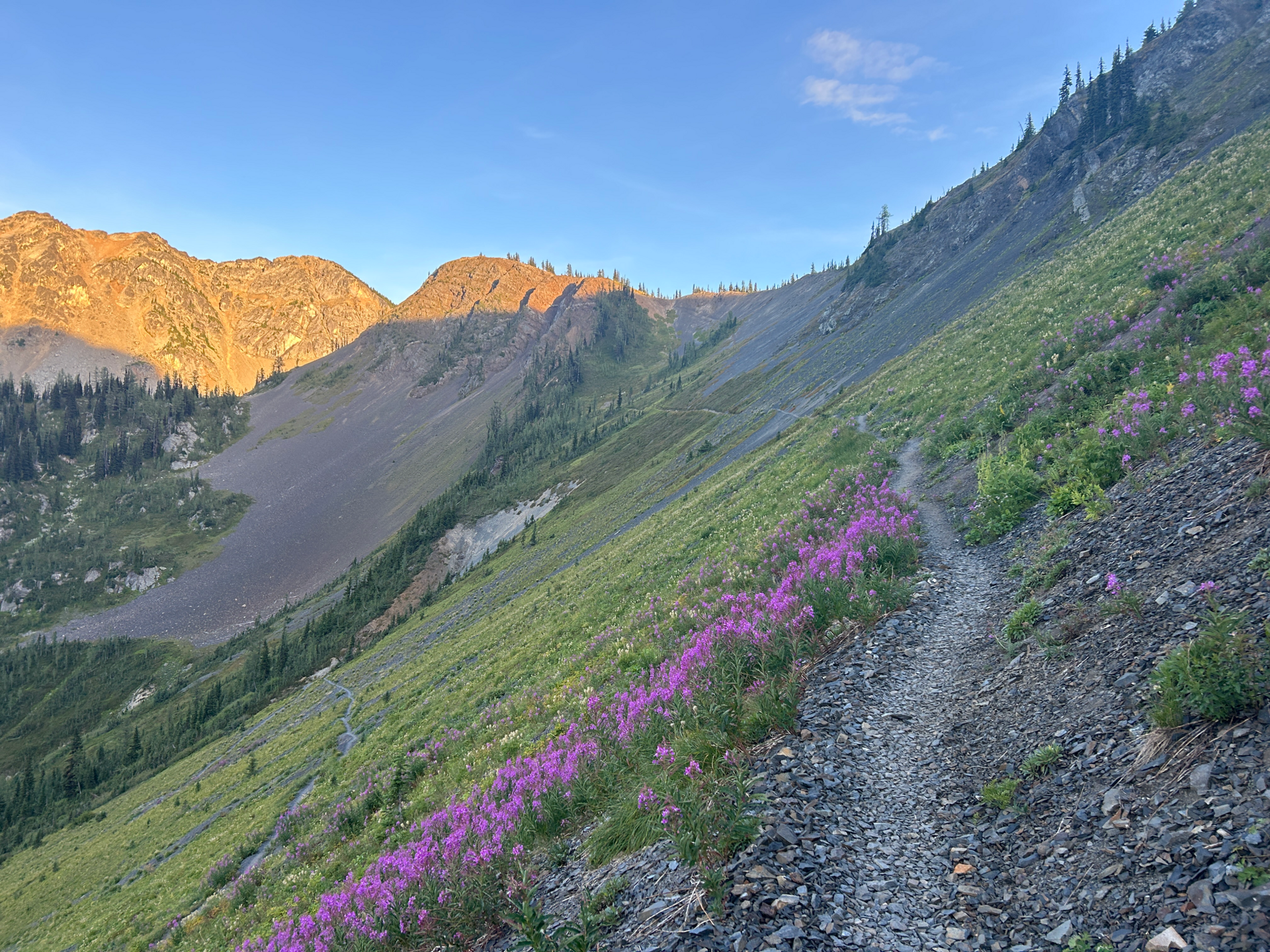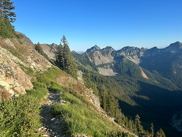 S naší rychlostí, a to nemyslím ironicky, jsme to do další civilizace měli 4 dny. Během těchto dnů se nám jen potvrzovalo, že Washington je svojí krajinou opravdu nádherný. Ve srovnání s Oregonem tu stále bylo na co koukat. Ano, i tady trail častokrát padal do hlubokých údolí s hustými lesy, ale oproti Oregonu to nikdy netrvalo dlouho a už jsme se zase drápali vzhůru. Trail naopak častokrát vedl delší dobu po nějakém hřebenu či vrstevnici. To se mi moc líbilo.
