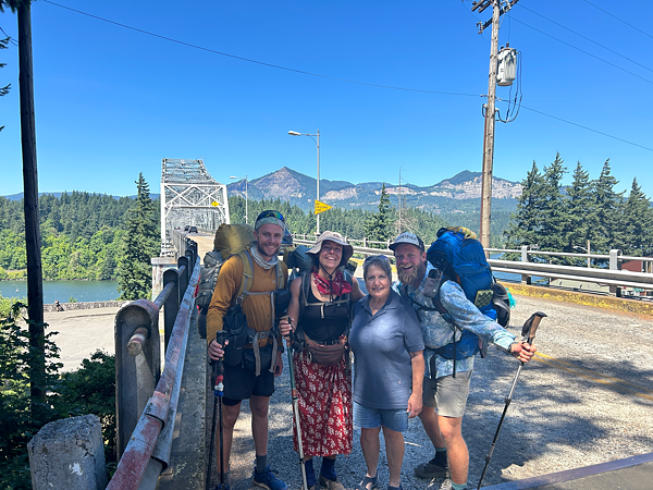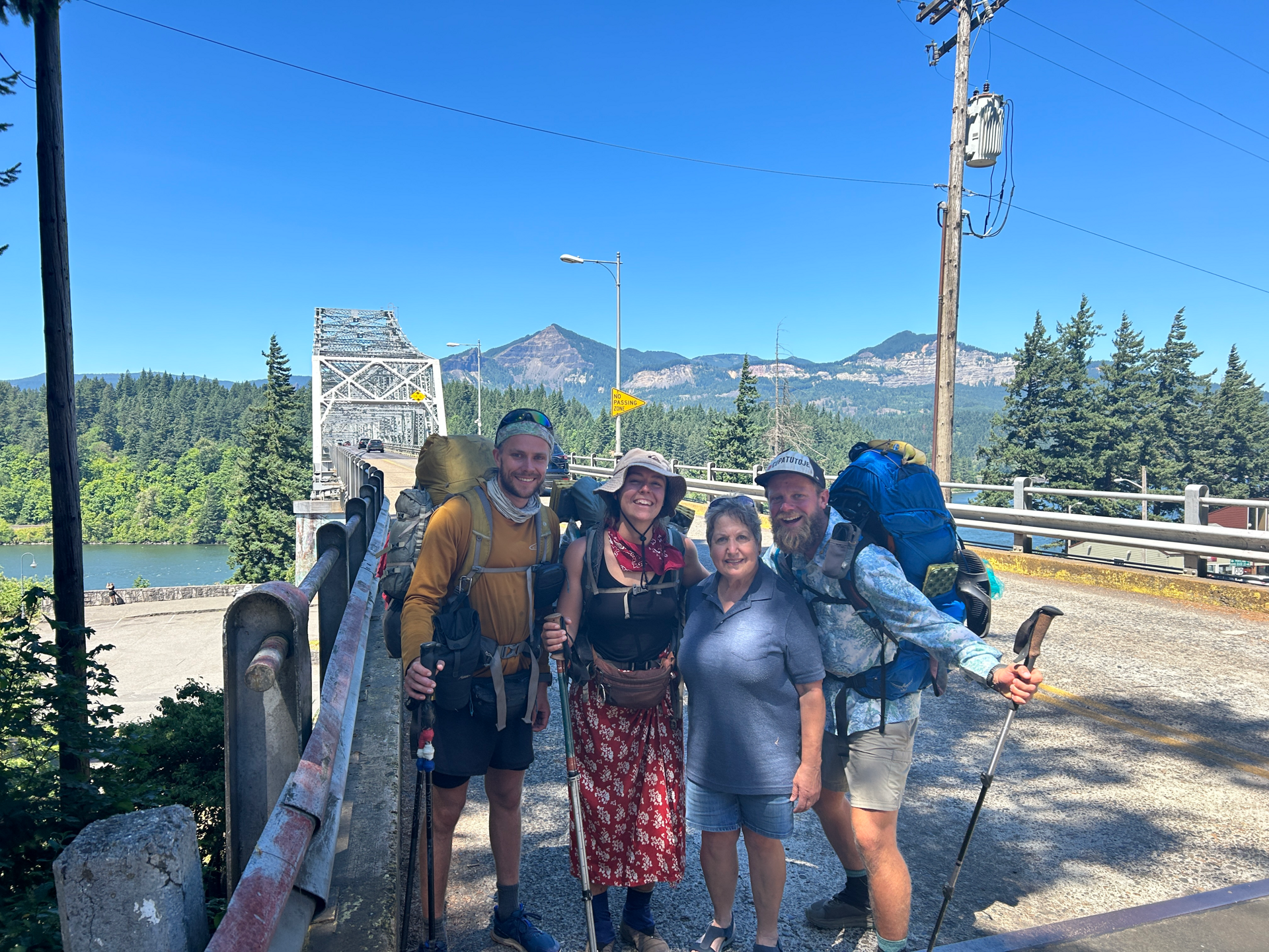 Cathy nás autem odvezla zpátky do Cascade Loks. Odeslali jsme připravené balíky a už stáli na začátku slavného mostu Bridge Of The Gods, který vede nad mohutnou řekou a přírodní státní hranicí Columbia River. Pro nás je tento most vstupní bránou do státu Washington.