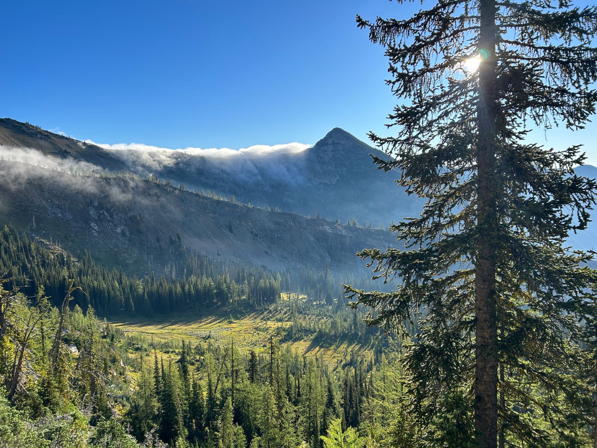 Zbývali nám tři dny do konce tohoto dálkového trailu. V každém z těchto dnů mi utkvěl nějaký moment v paměti. První den to byl dlouhý a prudký kopec, na který jsme se vůbec netěšili. Podél trailu ale byla neuvěřitelná spousta borůvek a my jsme nemohli přestat sbírat. Nahoru nám to trvalo dvakrát tak déle, a ještě jsme měli fialové pusy. Následující den ráno to byly mraky, které se doslova přelévaly přes krásný hřeben. Na místě s dobrým výhledem jsem zastavil a dobrých 10 minut jsem se jen díval na tuhle nádheru.