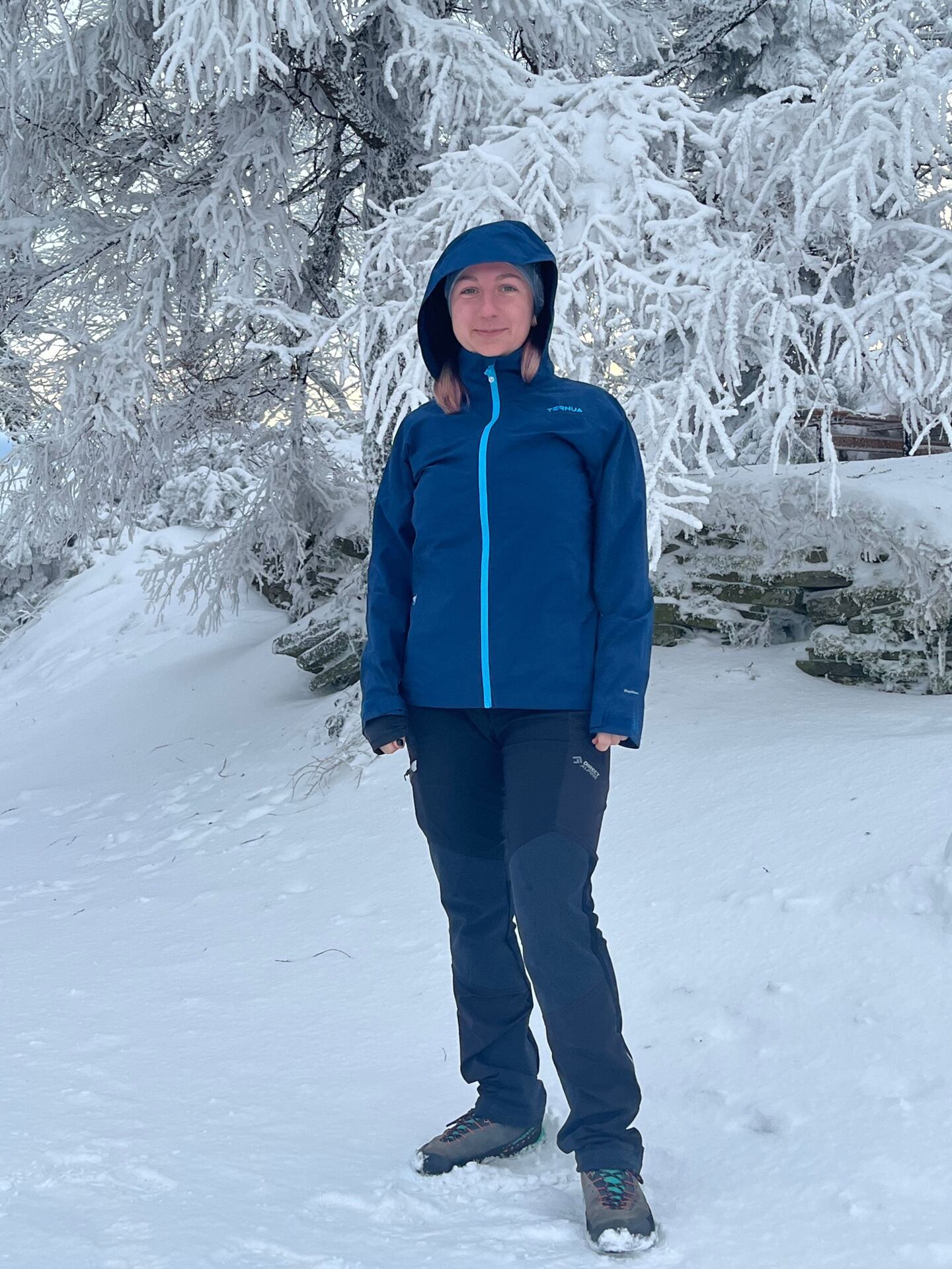 Při krátkých přestávkách v kavárnách na zahřátí horkou čokoládou navíc vždy stihla rychle uschnout a byla připravena na pokračování túry.