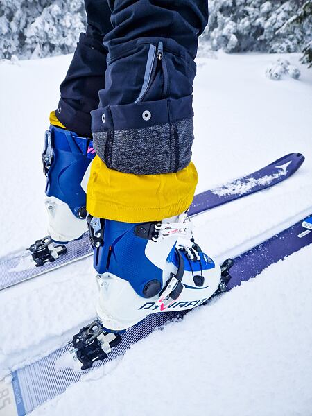 Při chůzi mám na botě povolenou horní přezku a měla jsem problém nohavici přes botu přetáhnout. Navíc mi manžeta z boty sjížděla na holeň, což nebylo moc příjemné. Musela jsem proto zastavovat a manžetu a nohavici vždy upravit. Mám boty Dynafit Hoji, které však nemají zrovna nejužší komín, takže je pravděpodobné, že u jiného typu bot tento problém nenastane. Při dotažení bot na sjezd již kalhoty botu krásně obepnuly a nikam nesklouzávaly.