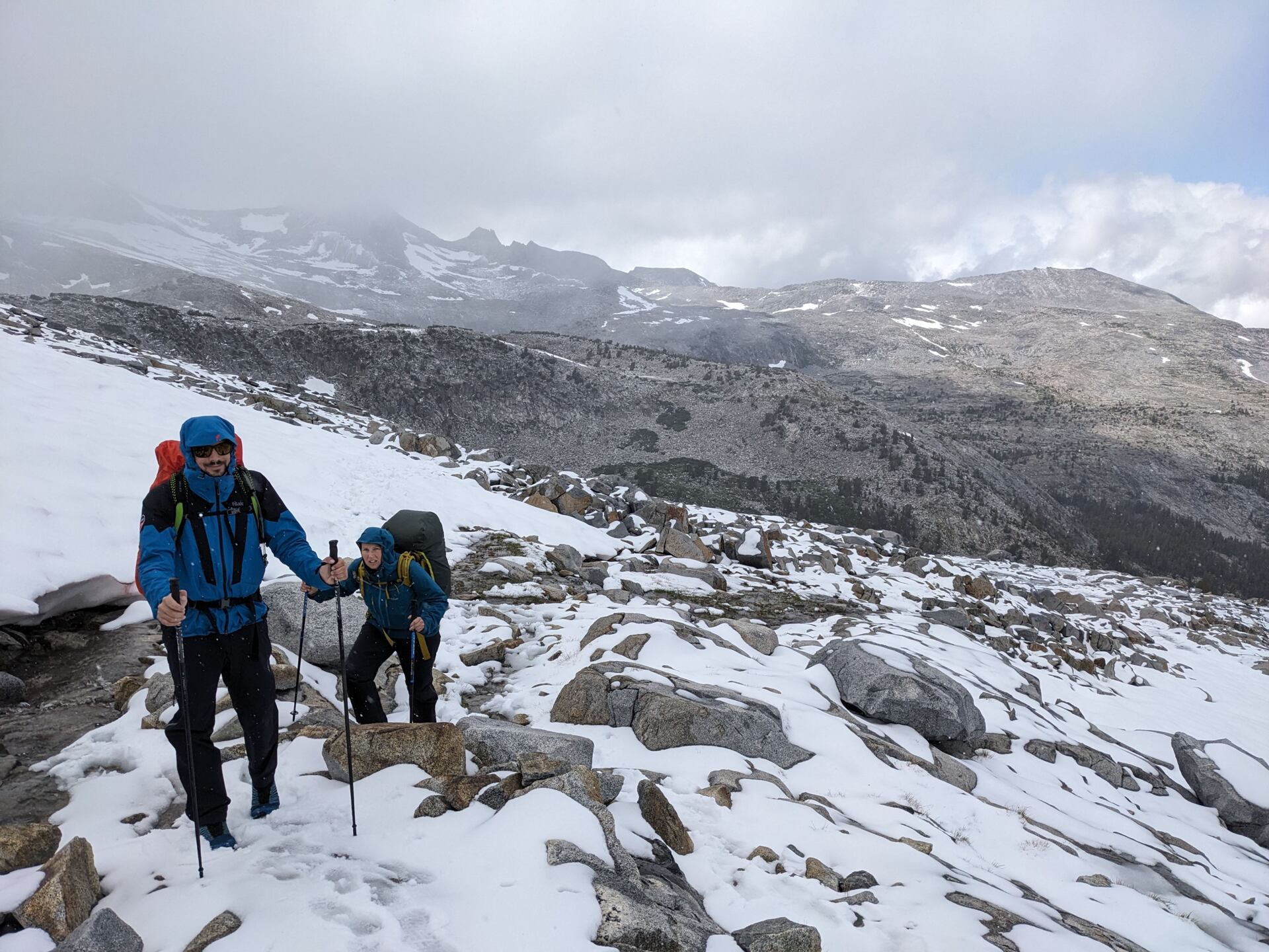 Dále jsme stoupali do průsmyku Donohue pass, kde se nad hranicí lesa změnil déšť ve sněhovou vánici. STINGER PACLITE během chvíle uschl a dále poskytoval ochranu před větrem a sněhem. Při prvním použití tak bunda dostála slibům a vše vydržela.