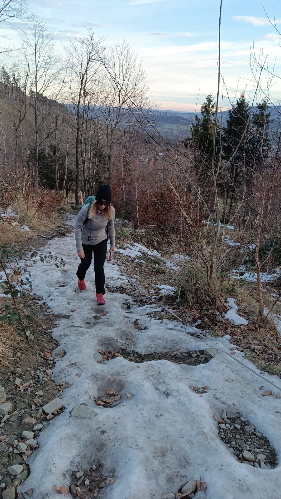 Pokud není úplně namrznuto, proběháte i úseky se sněhem