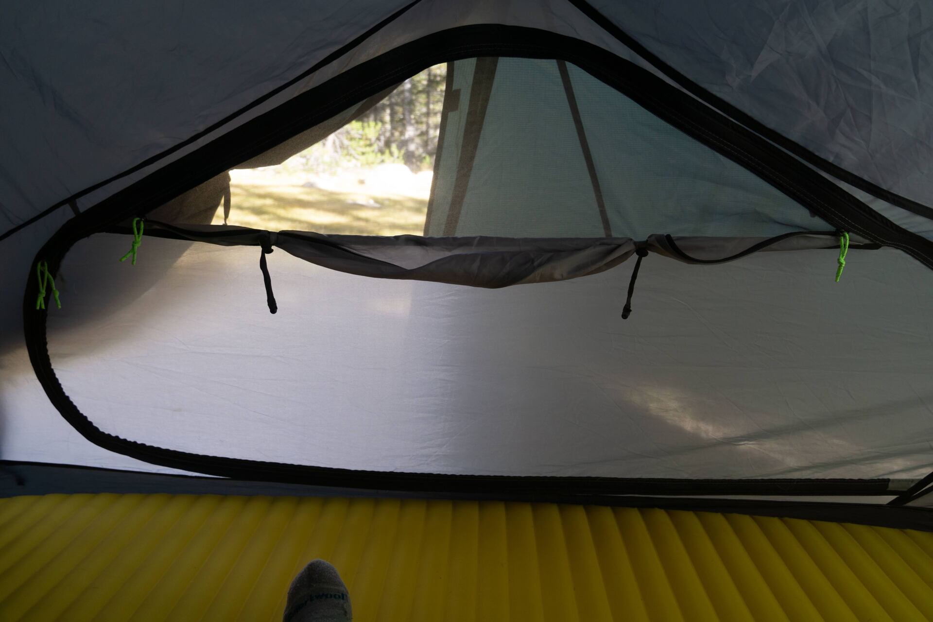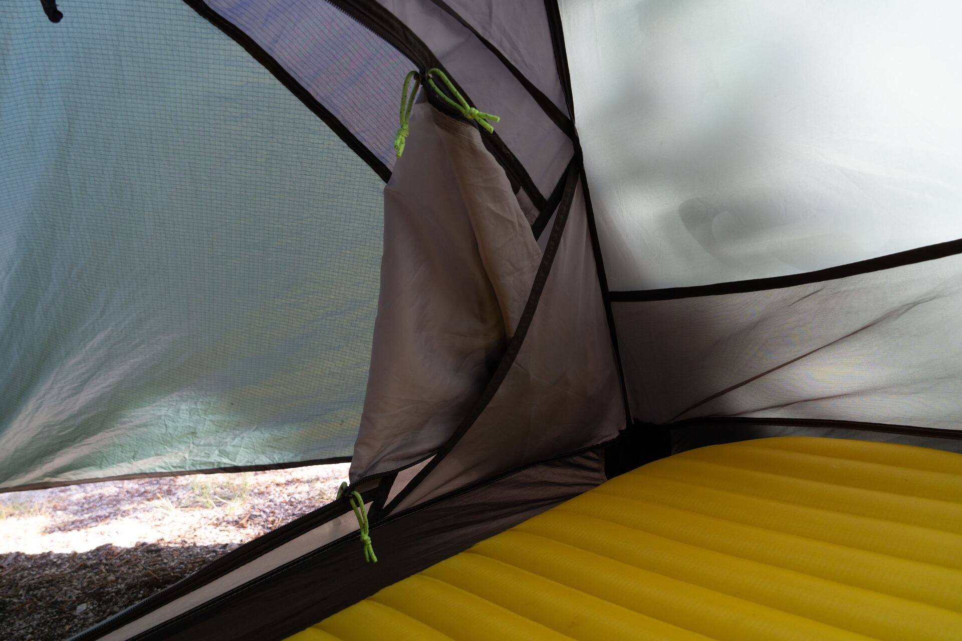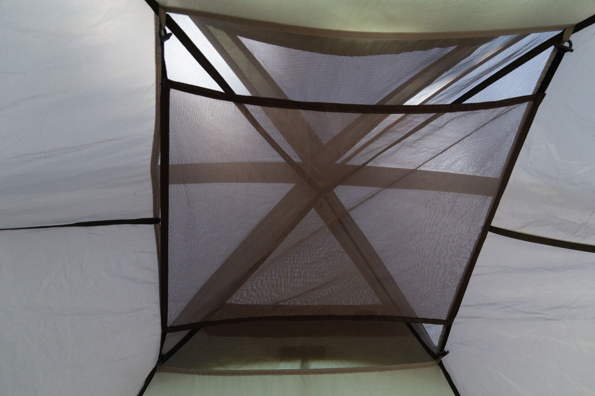 Vchody mají síťku pro větrání ve své horní části. Ocenili bychom, kdyby síťka byla přes celý vchod, my si tak mohli užívat výhledy při večeři ve stanu a nenechat se otravovat komáry.