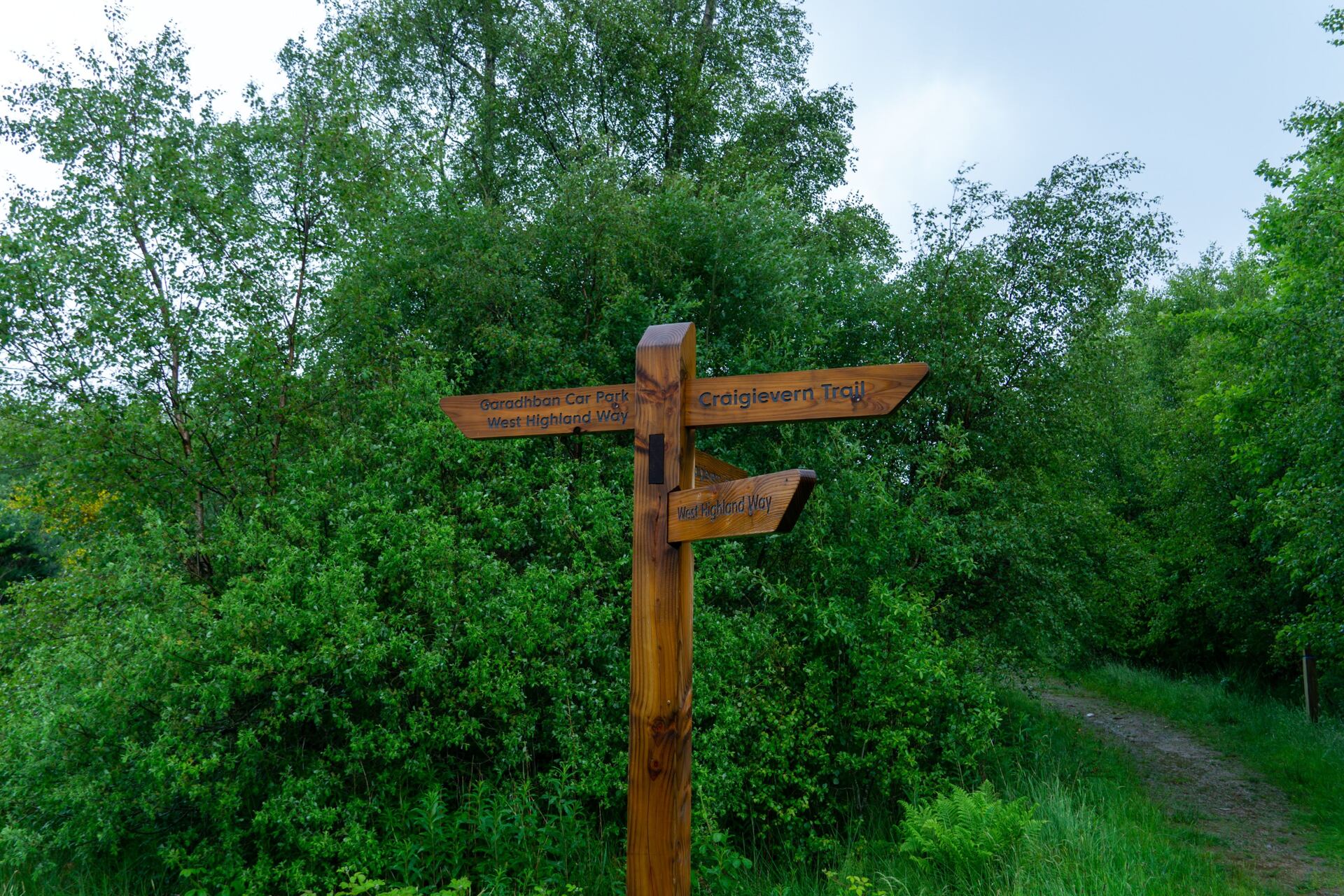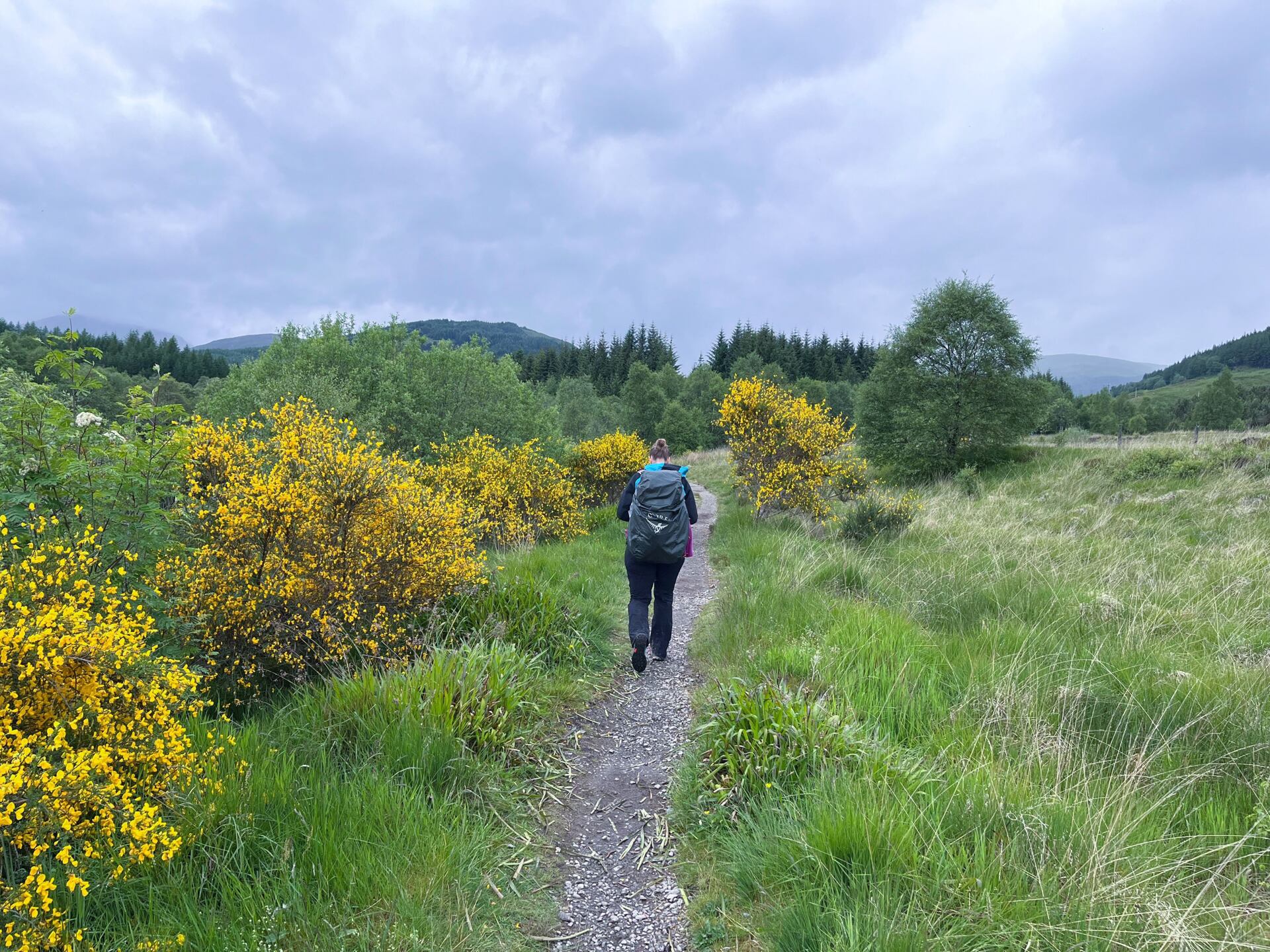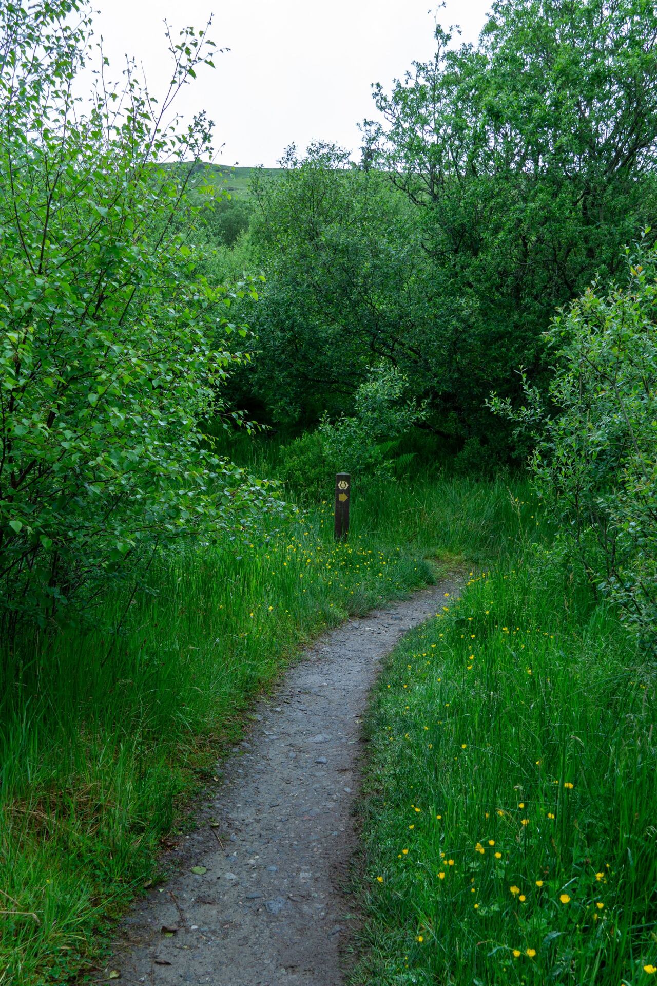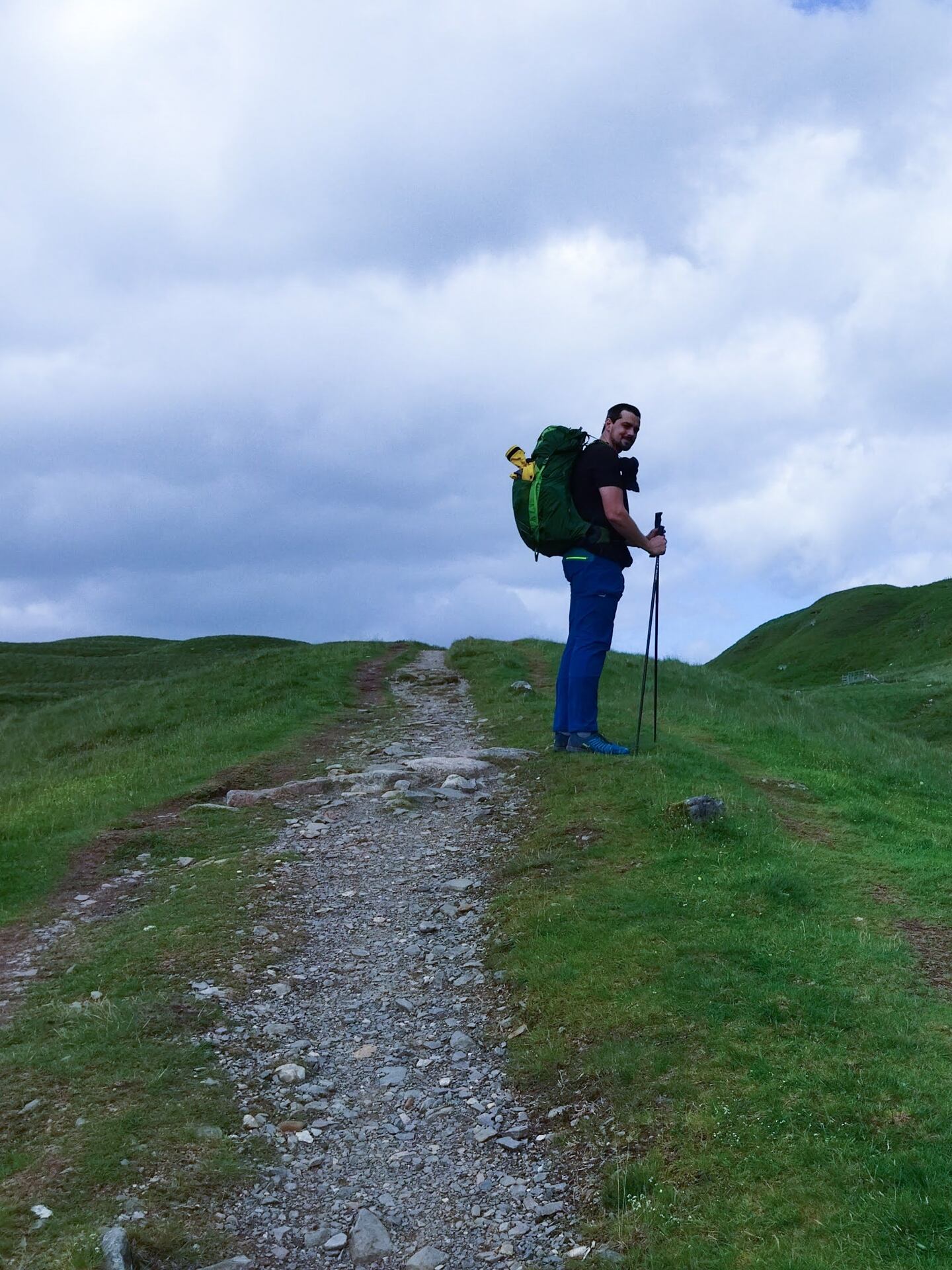Značení trailu je opravdu luxusní a zabloudit se nepovedlo ani nám. První den byl hlavně ve znamení učení se, kdy už je ten správný čas, začít se oblékat do nepromokavé bundy a kdy ještě počkat. K večeru už se nám to daří lépe. Naše první noc je v kempu poblíž Drymenu.