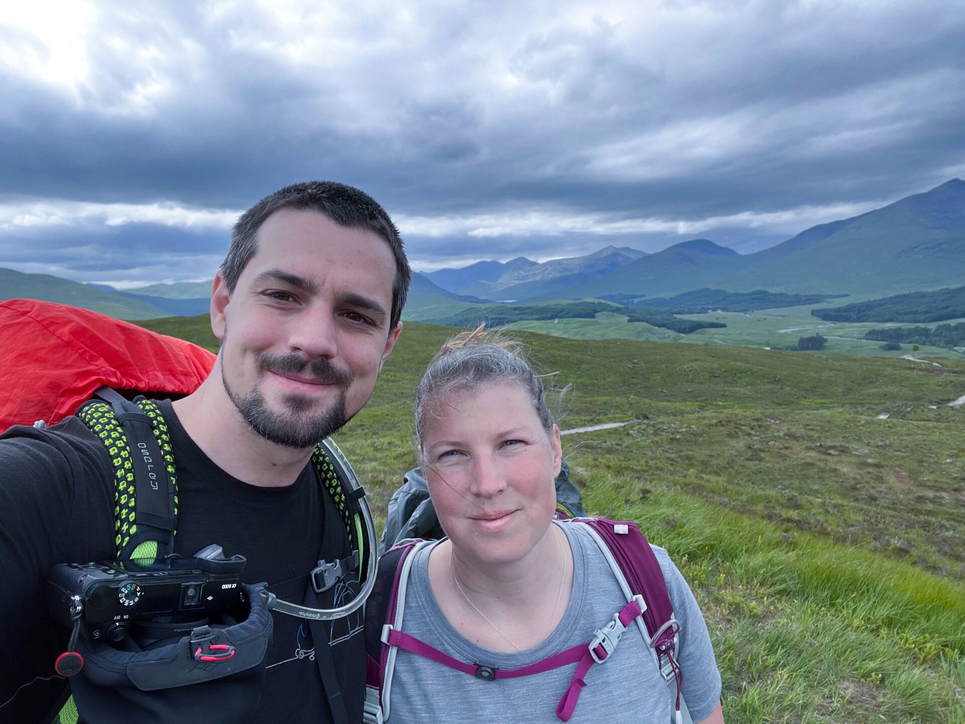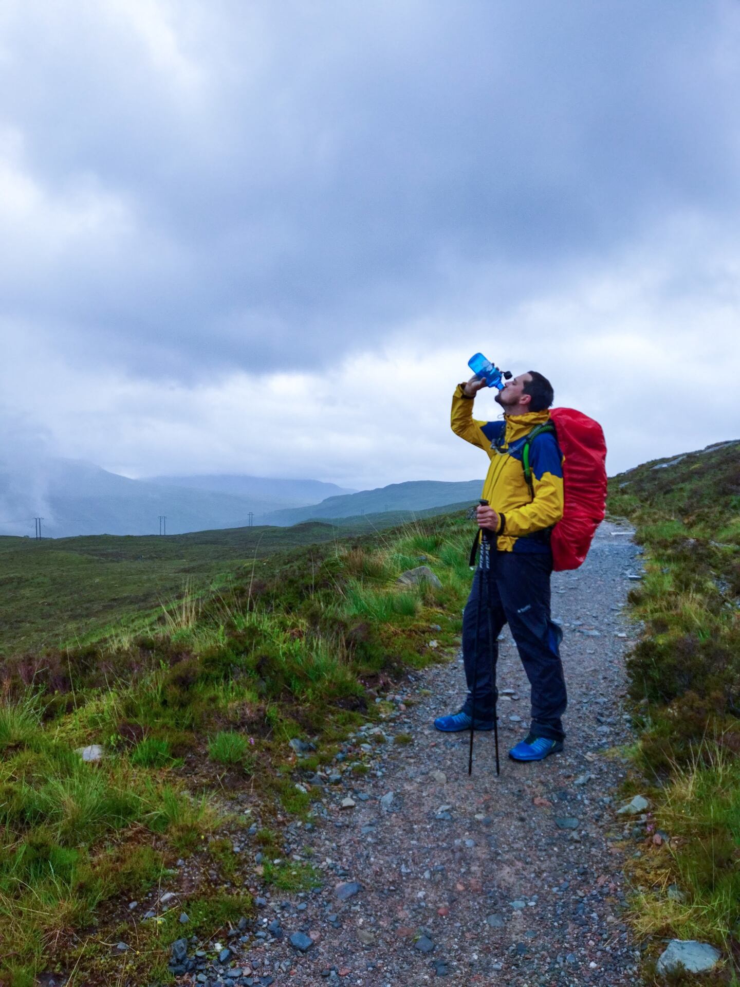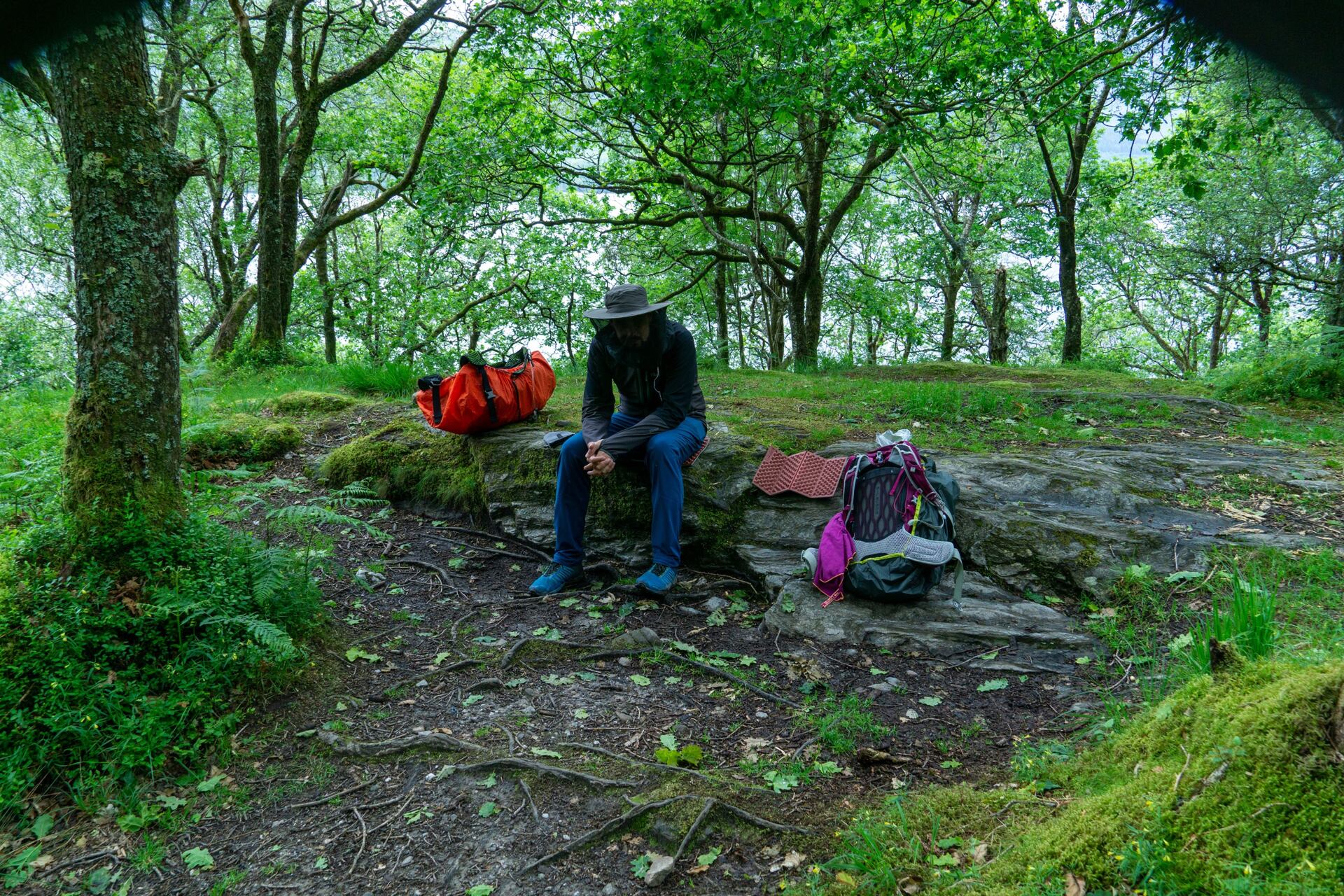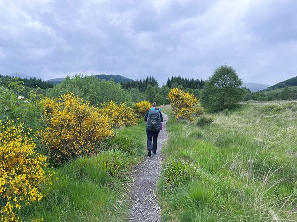 Značení trailu je opravdu luxusní a zabloudit se nepovedlo ani nám. První den byl hlavně ve znamení učení se, kdy už je ten správný čas, začít se oblékat do nepromokavé bundy a kdy ještě počkat. K večeru už se nám to daří lépe. Naše první noc je v kempu poblíž Drymenu.