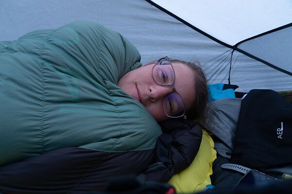 Fouká hodně studený vítr, teplota klesá, ale je tu k dispozici teplá sprcha. Pod střechou zde mají několik stolů v závětří, kde povečeříme. Na spaní jsme si vzali lehčí péřové spacáky, že v červnu nebude taková zima, ale občas nás v noci budí chlad, a to mají komfort kolem 6 °C.
