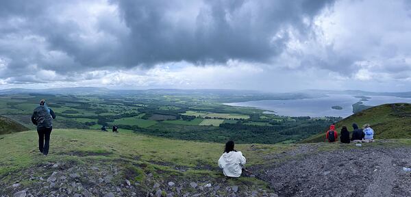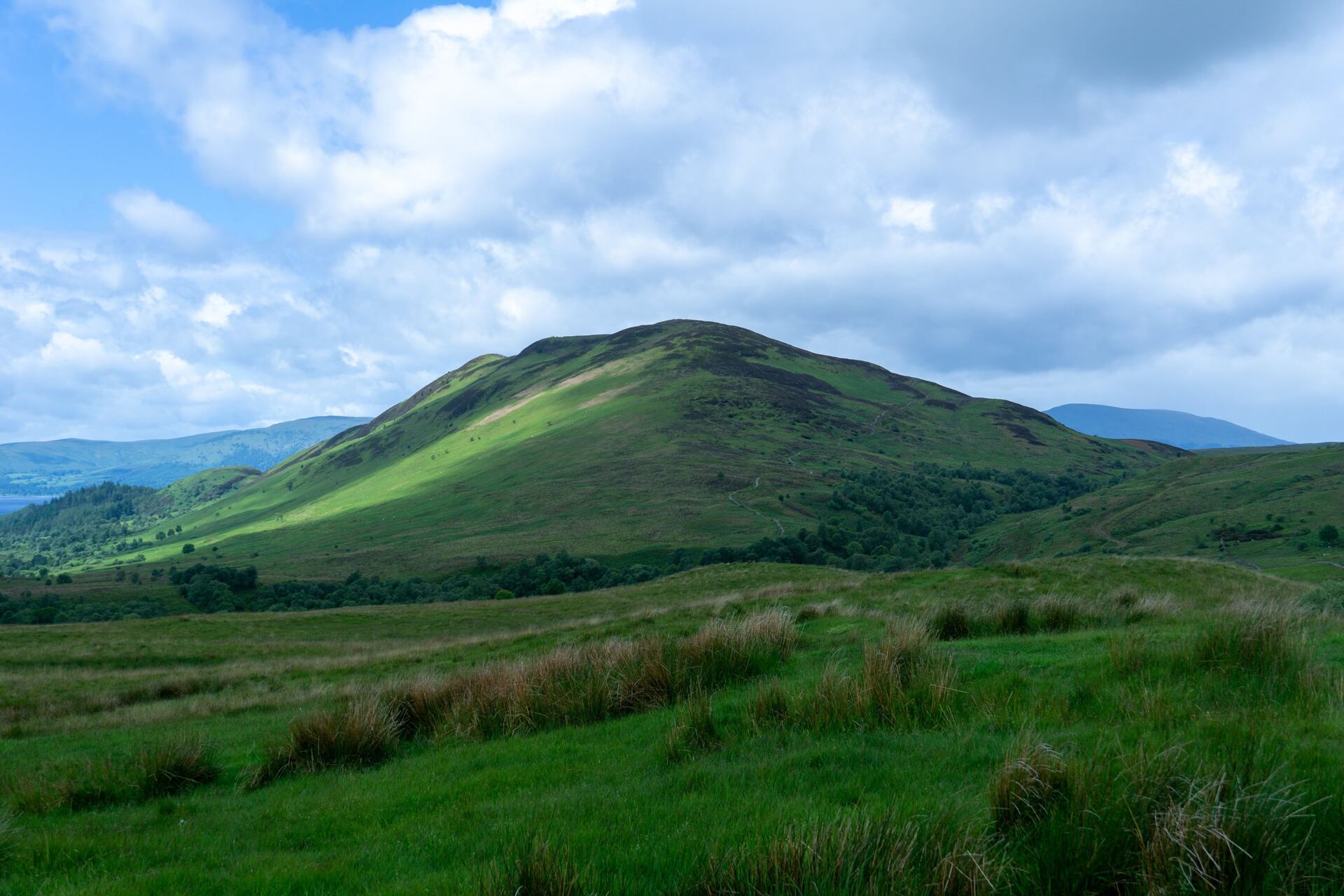 My volíme cestu horem a dobře děláme. Z vrcholu je široký výhled na jezero Loch Lomond a celé okolí. Nekocháme se však dlouho. Z dešťového mraku, který nás už notnou chvíli pronásleduje, začíná pršet. To je znamení k ústupu zpět do údolí. Zdejší vrchol je velmi populární, takže o neděli to zde vypadá jako o prázdninách na Sněžce.