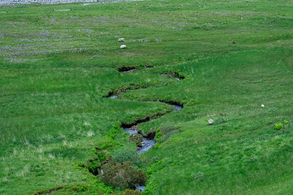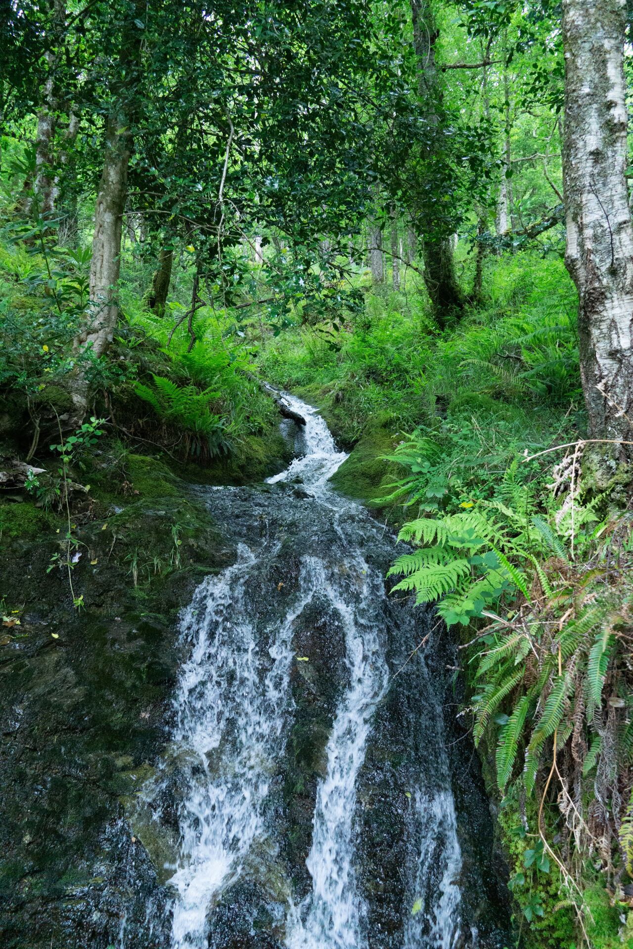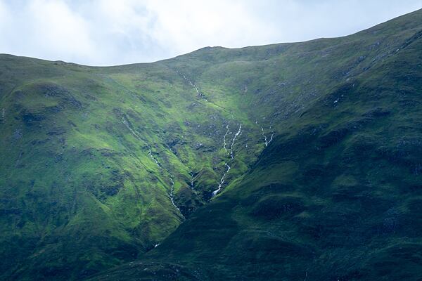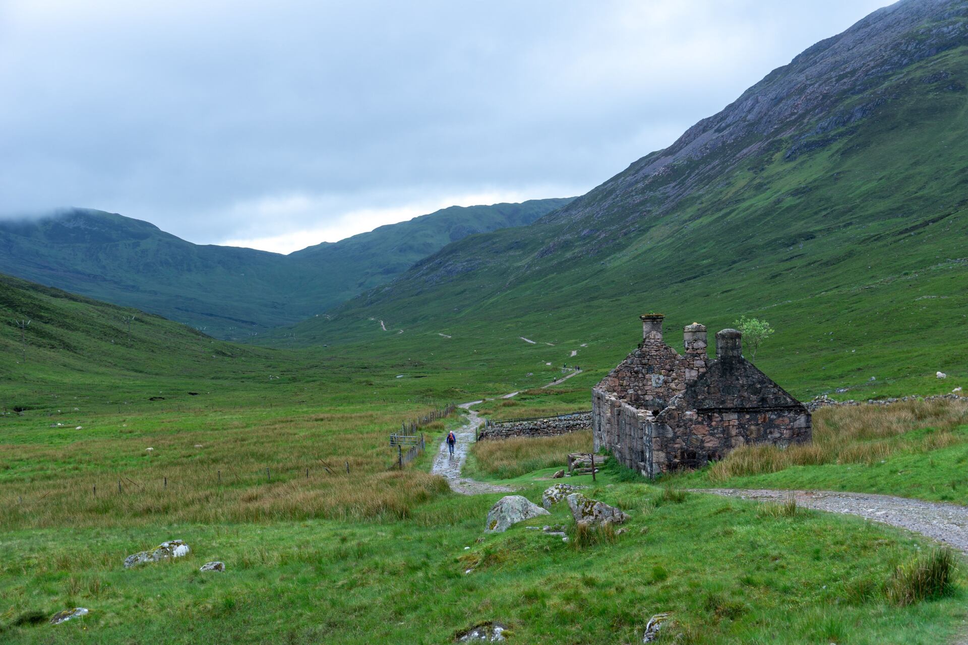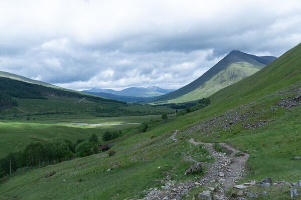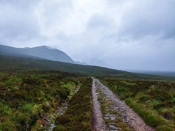 Ráno opět balíme mokrý stan. Už to začíná být trochu nepříjemné. Z Kinlochlevenu stoupáme přes hřeben do dalšího údolí. 36hodinový déšť způsobil, že z cesty se stal potok. Krásným údolím tak víceméně proskáčeme po kamenech. Celý dojem narušuje jen silný studený protivítr, ale když zasvítí slunce, je i docela teplo. Kocháme se krajinou a hledáme cestičky, kudy se dostat přes jednotlivé potoky a potůčky.
