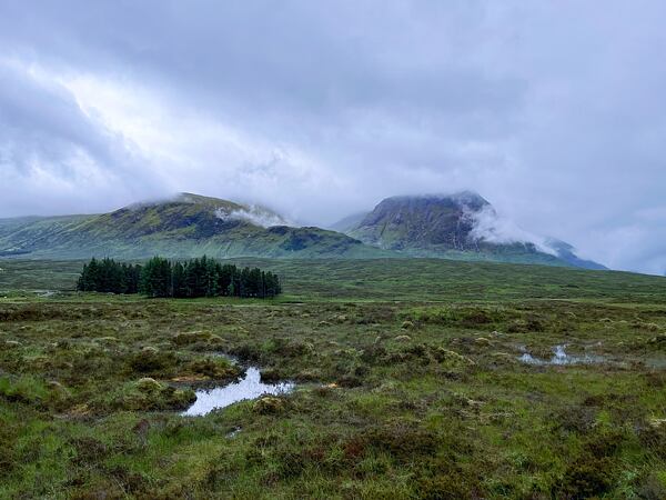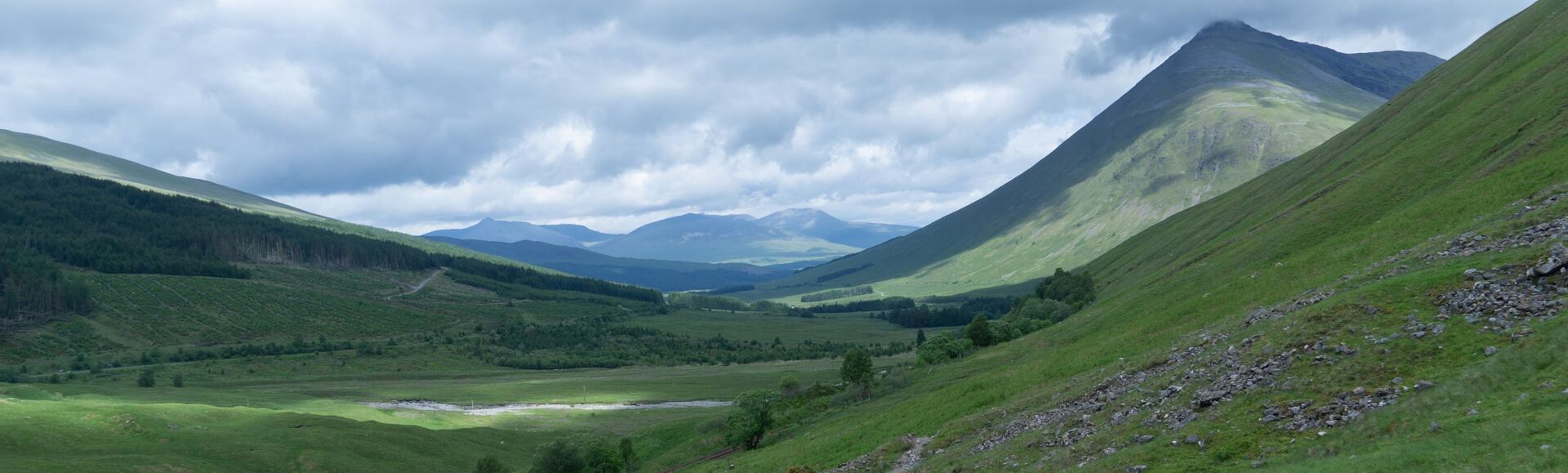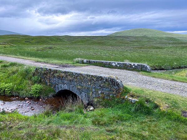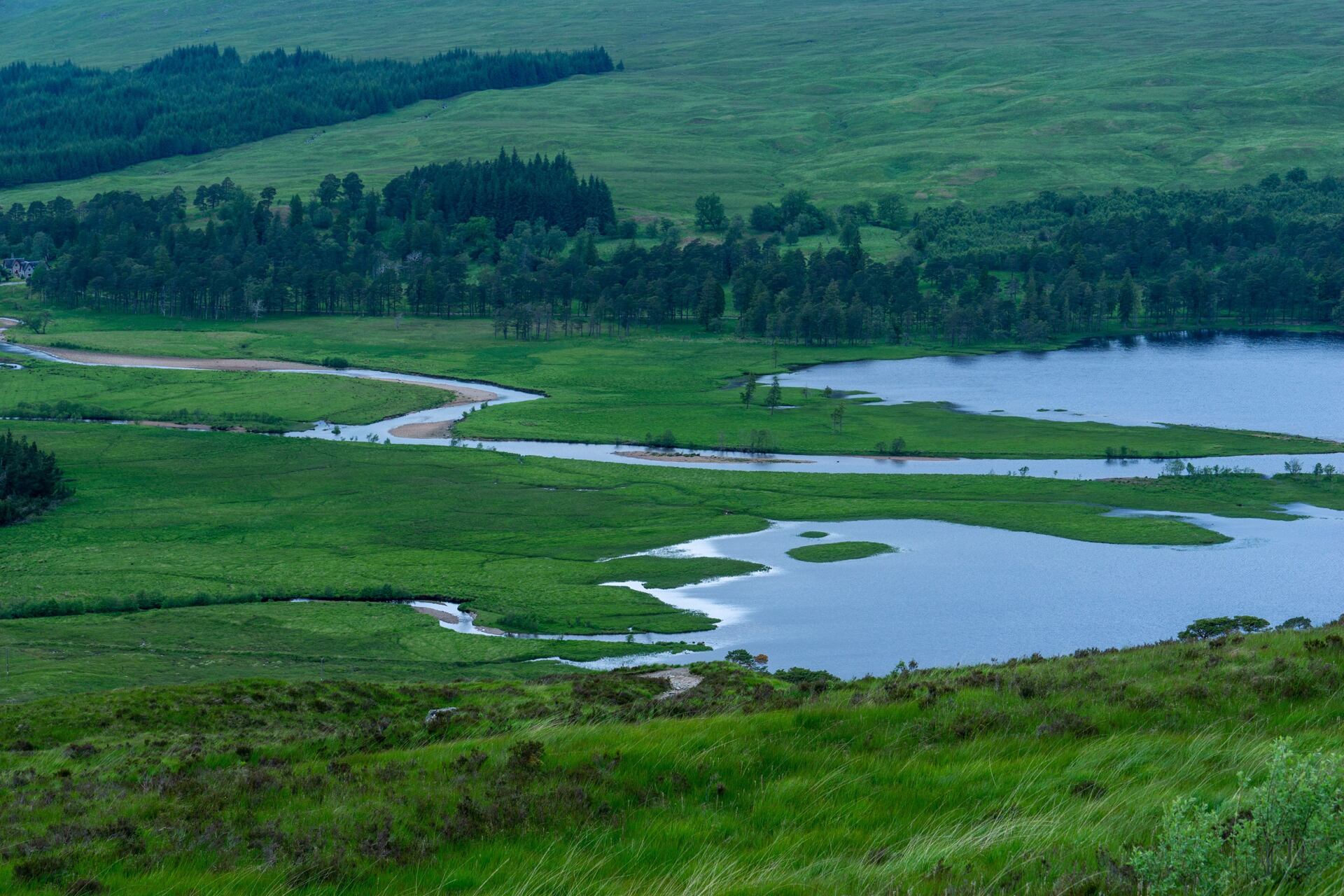 Poprvé si dáváme i oběd v Bridge of Orchy. Nikam nespěcháme. Vzhledem k tomu, že zde buď prší nebo fouká studený vítr nebo létají midgets, tak by nás stejně čekalo jen brzké ležení ve stanu. Za Bridge of Orchy nás po mírném stoupání na kopec Mam Carraigh, odměňuje široký výhled do okolí.
