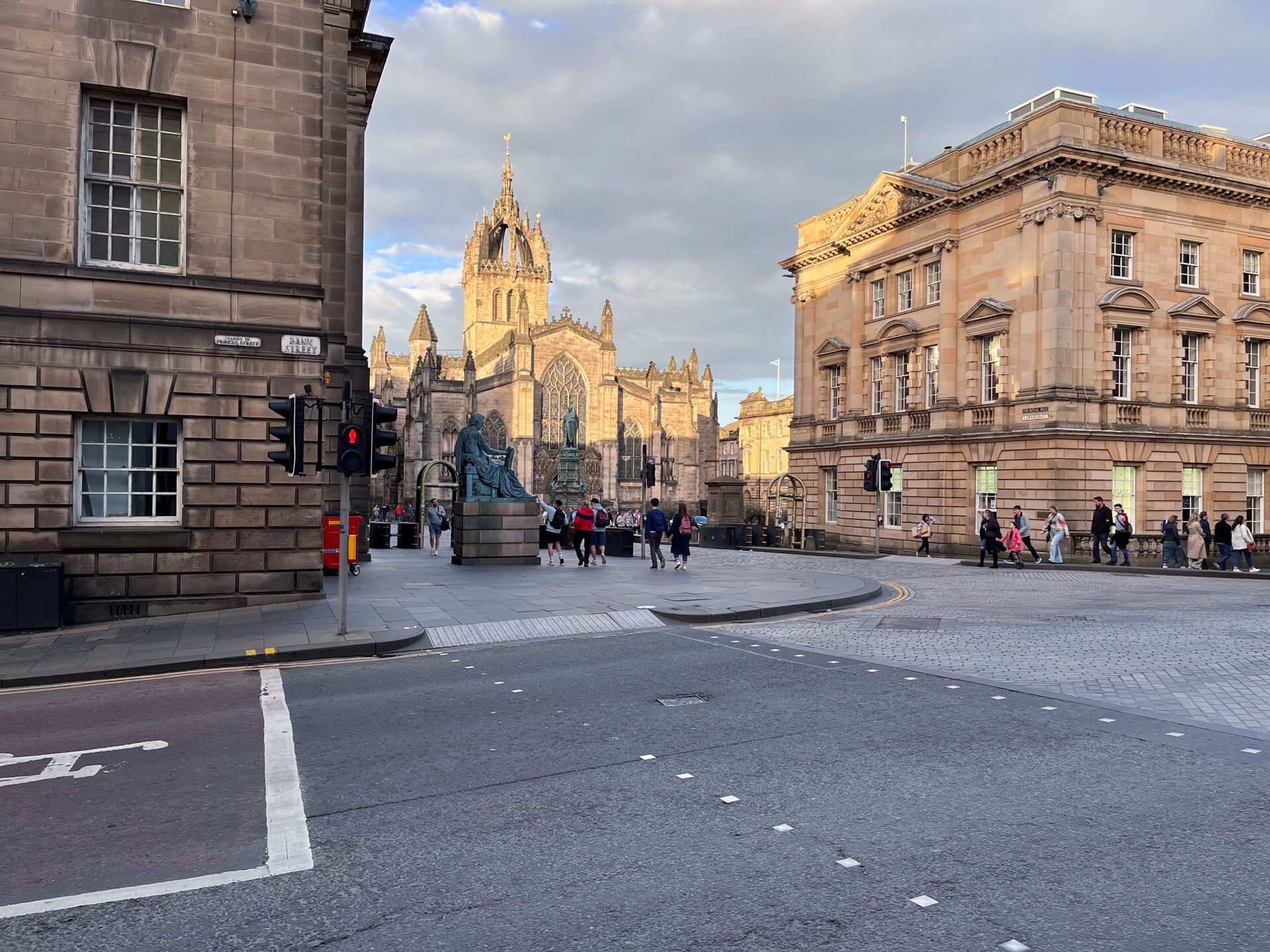 Do Edinburghu přilétáme přímým letem z Prahy, kvůli zpoždění až hodně navečer. Cesta z letiště do centra města je jednoduchá. Jediná tramvaj a dobré značení nás nenechává na pochybách. Před setměním (což jsme nakonec zjistili, že v červnu je až v 11 v noci) si ještě stíháme projít centrum a ubytovat se.