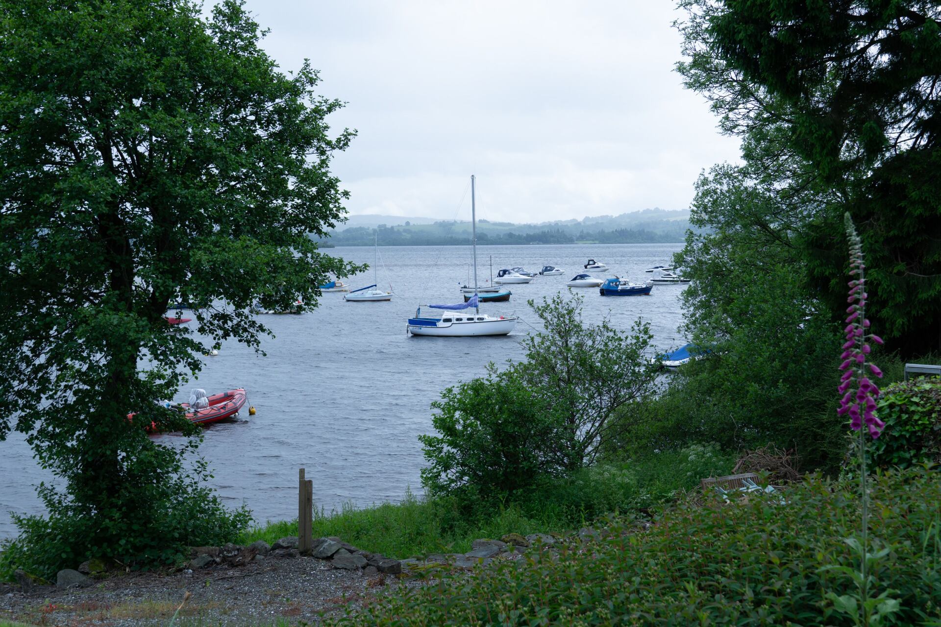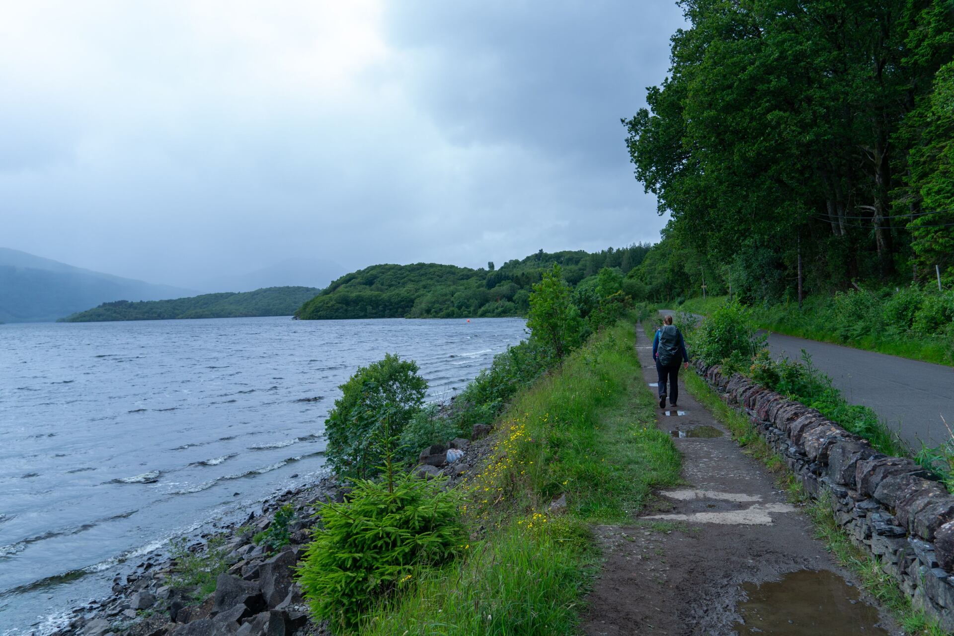 Pod kopcem v městečku Balmaha si zajdeme na místní kávu a v krámku dokupujeme sušenky na večer. Cesta pokračuje podél jezera a skýtá krásné výhledy na vodní hladinu a po upravených cestách kilometry rychle přibývají.