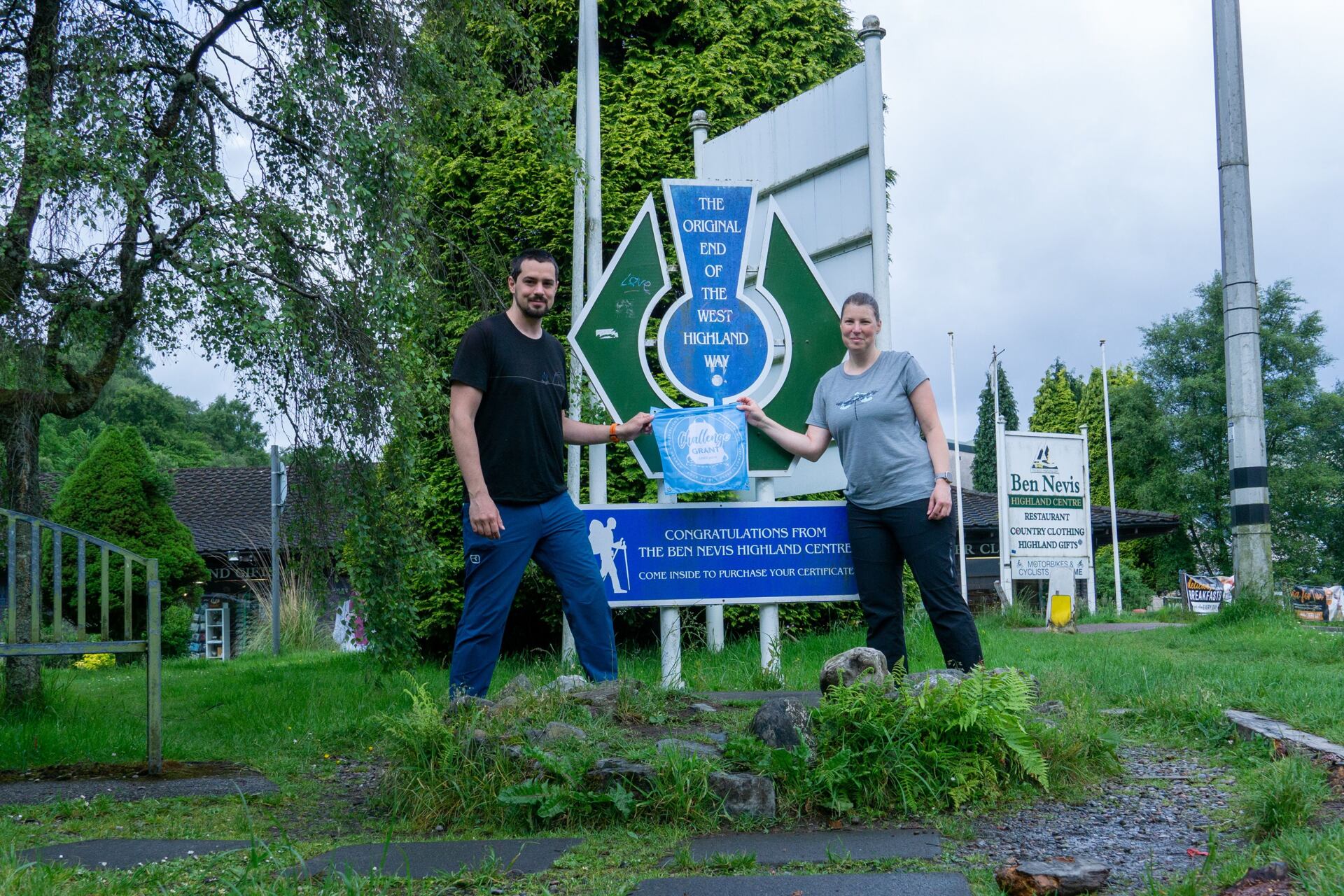 Ráno nás opět vítá déšť. V pohodě docházíme posledních pár kilometrů. Pořizujeme několik povinných fotek na dvou různých koncích WHW a nakupujeme pohledy.