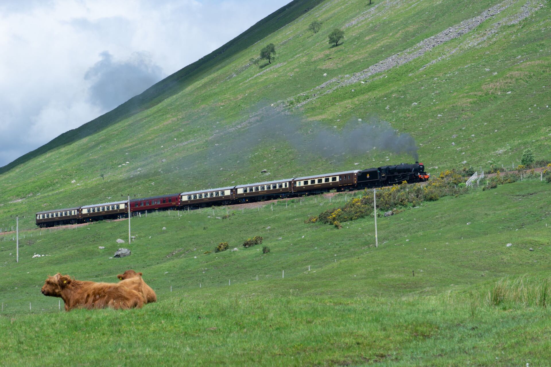 Před dvanáctou nám jede vlak zpět do Glasgow. Mezitím jsme ještě stihli několikrát zmoknout a za svitu sluníčka se usušit. Na cestu vlakem jsme se těšili, protože projíždí Highlands a také několika místy, kudy jsme šli. Vlak je úplně plný, což je po sedmi dnech samoty trochu šok. Na tolik lidí nejsme připraveni.