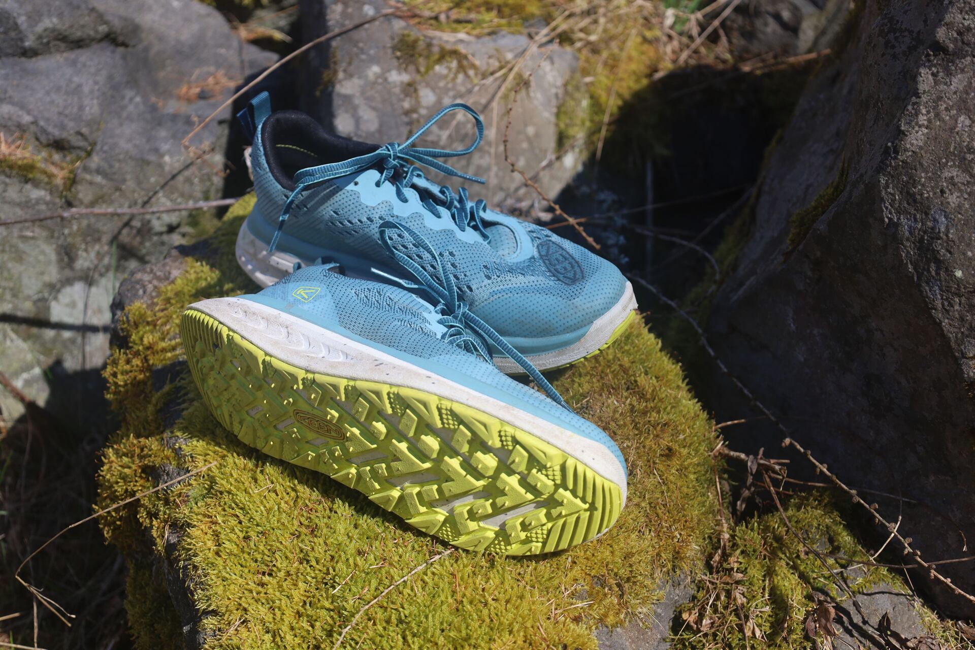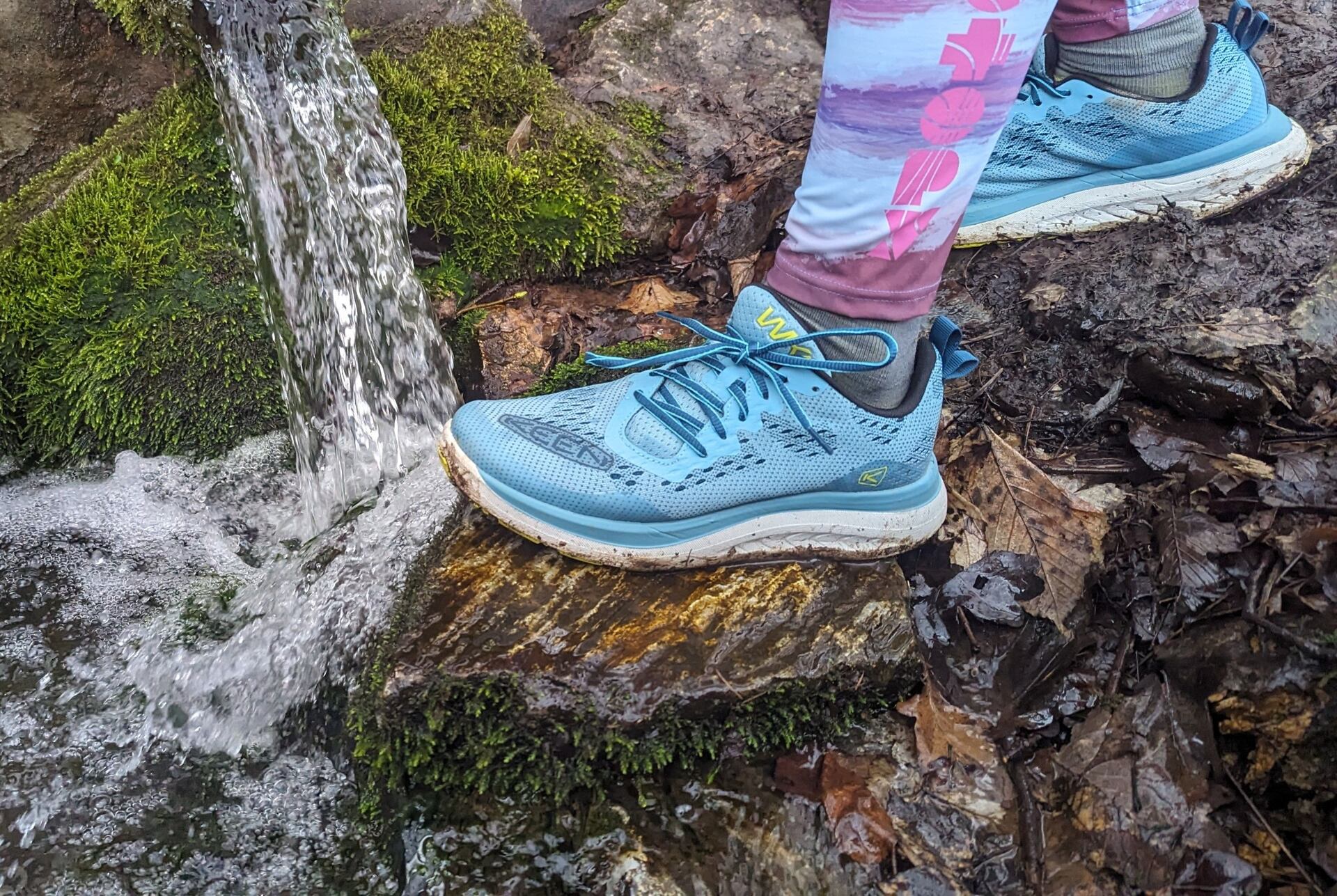 Při chůzi jsem také ocenila KEEN high-energy mezipodešev, došlap byl měkký a pohodlný. Bota je dostatečně prostorná a dovedu si ji představit i na delší trasy, než jsem stihla vyzkoušet. Podešev je stabilní na měkkých i zpevněných površích a ani za vlhka jsem neměla problémy. Jejich hlavní přednost vidím spíš v rychlém pohybu v méně náročném terénu.