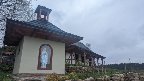 Cesta vedla přes osadu Lesná, Bernovský vrh a Kamennou hůrku, které jsou mimo turistické trasy, tak cesta není úplně frekventovaná (tedy kromě těžké lesní techniky). Další zastavení bylo na pumpě na Hoře Sv. Šebestiána. Vzhledem k neustálému dešti a zimě jsem se už těšil na 5 minut pauzu a aspoň teplý čaj. Bohužel automat na kávu/čaj nefungoval.
