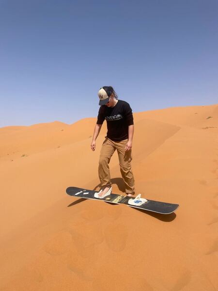 Druhý den jsme ještě vyzkoušeli písečný snowboard. Jinými slovy starý snowboard s rozbitým vázáním, na kterém jezdili někteří v sedě a ti odvážnější ve stoje. Bolí to! Fakt to hodně bolí!