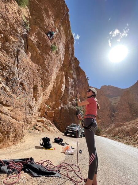 V této lezecké oblasti je velice důležité pohlídat si, kdy kam svítí slunce. O nějaké ideální podmínce okolo 10 stupňů se v Maroku mluvit nedá asi v žádném měsíci v roce. My si bohatě vystačíme s tím, že nám nepraží na záda.