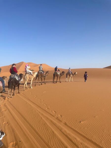 Přijíždíme k hotelu Le Petit Prince po prašné cestě. Říkám si, jaké asi bude ubytování, když ani nemají příjezdovou cestu. Jsme mile překvapeni. Luxusní pokojíčky, přichystaná večeře a hlavně neuvěřitelné ticho pouště. Ráno vstáváme na pohodu, snídáme a vymýšlíme plán dne. Co se jídla týče, tak všude, kde jsme přijeli, nás neskutečně vykrmovali. Ráno palačinky, večer tažin, ráno tažin a vždycky sladký marocký čaj.