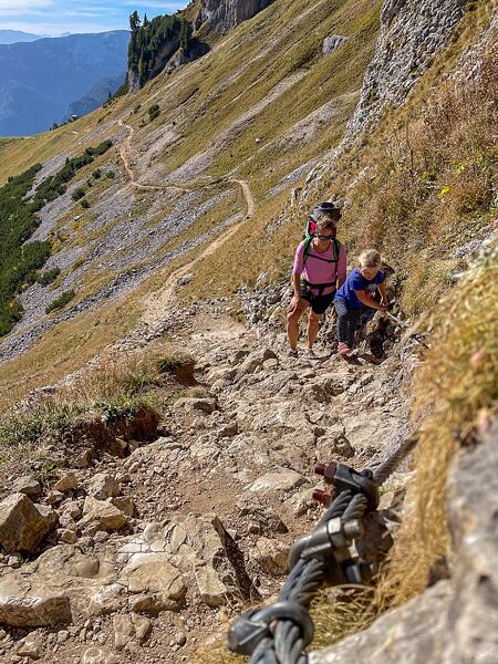 Ve východní stěně Gasselhöhe vede také pěkná ferrata Franzi (C/D) a poblíž najdete i dětskou trasu, takže můžete během výletu rodinné aktivity dále nakombinovat.