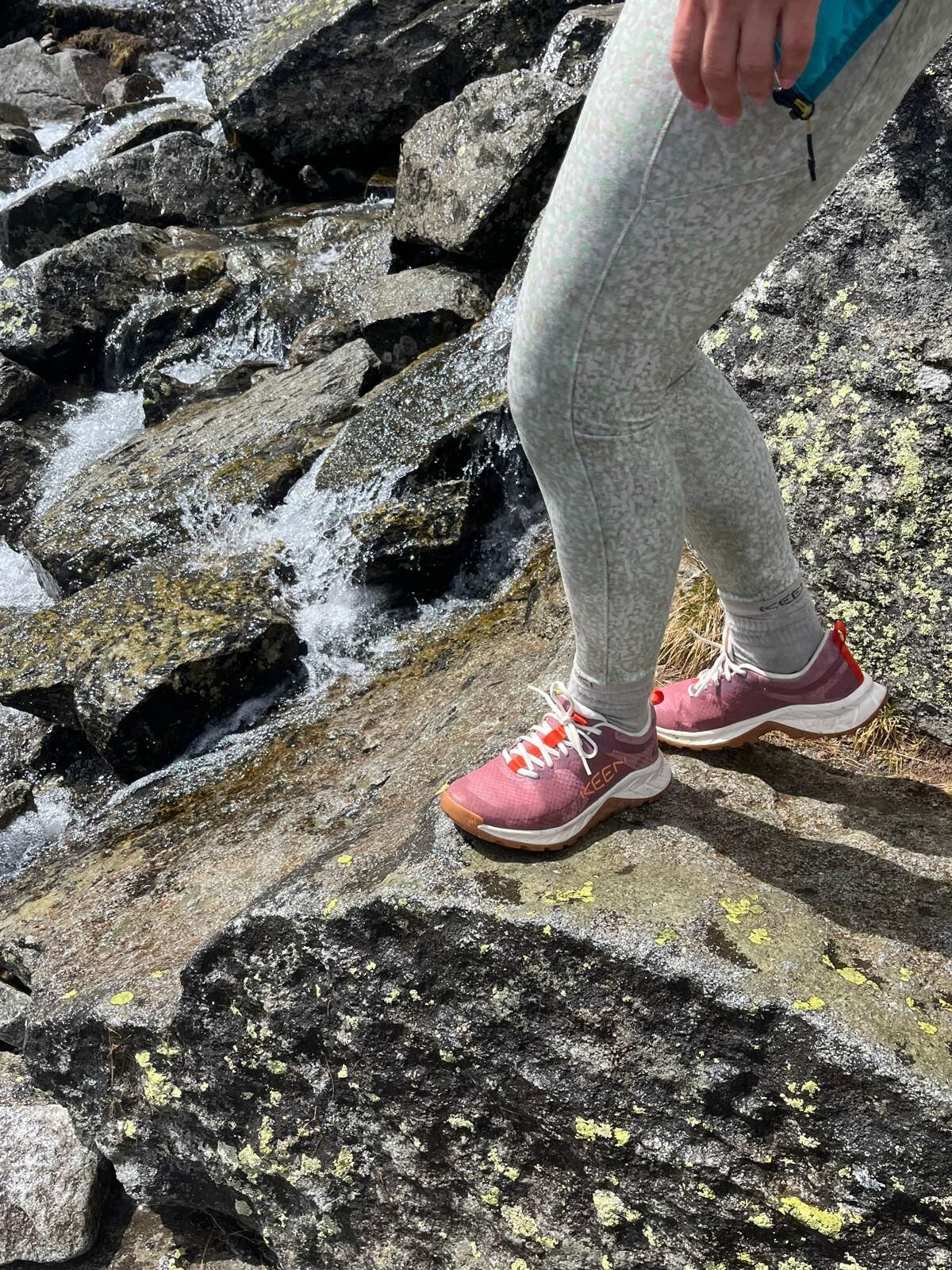 Osobně jsem je testovala v poměrně náročném terénu slovenských Tater. I přes původní skepsi k podešvi můžu říct, že mě bota několikrát doslova zachránila od pádu. Za to děkuji gumové podešvi KEEN.ALL-TERRAIN s vícesměrným vzorkem a výstupky. Mokré kameny, vlhká půda, prudké kopce – podešev se přilepila a přilnula ke všem přírodním povrchům, což se ale o mokré hladké dlažbě ve městě za mě říct nedá.