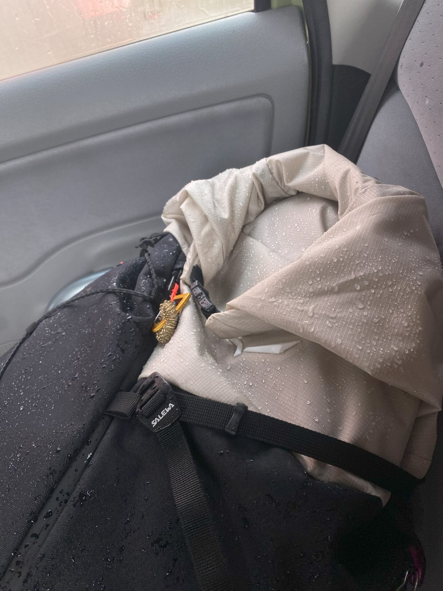 Při menších přeprškách jsem pláštěnku na batoh ani nevyndávala, jelikož mi nikdy díky DWR úpravě bez PFC nepromokl (a že v Liberci prší hodně).