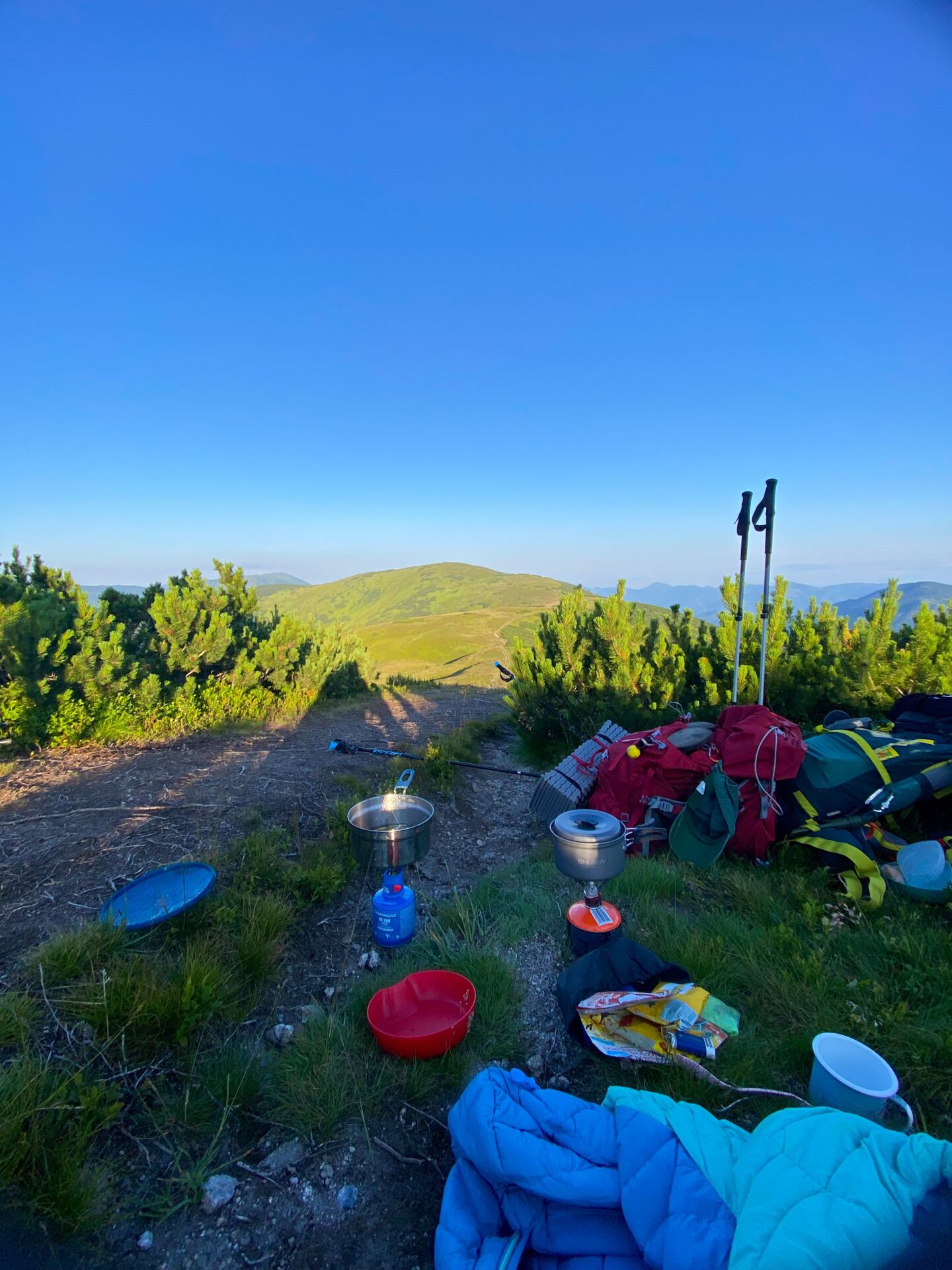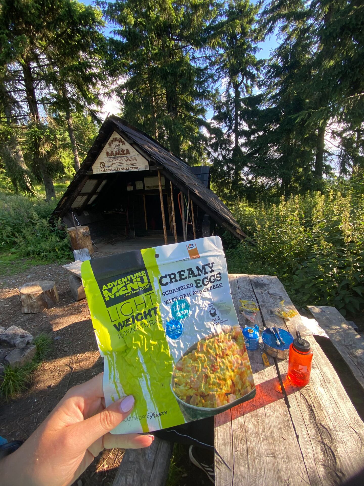 V noci bylo v útulně šílené horko. Probouzíme se, k snídani si dáváme párky a v 8:00 už vyrážíme směr útulna Ramža. Hned ráno potkáváme pár lidí, kteří nás vystrašili, že v útulně bude zaručeně plno. Říkáme si, že kdyžtak budeme bivakovat. Dnes nás čeká přes dalších 1000 m stoupání a 1150 m klesání a něco kolem 20 km.