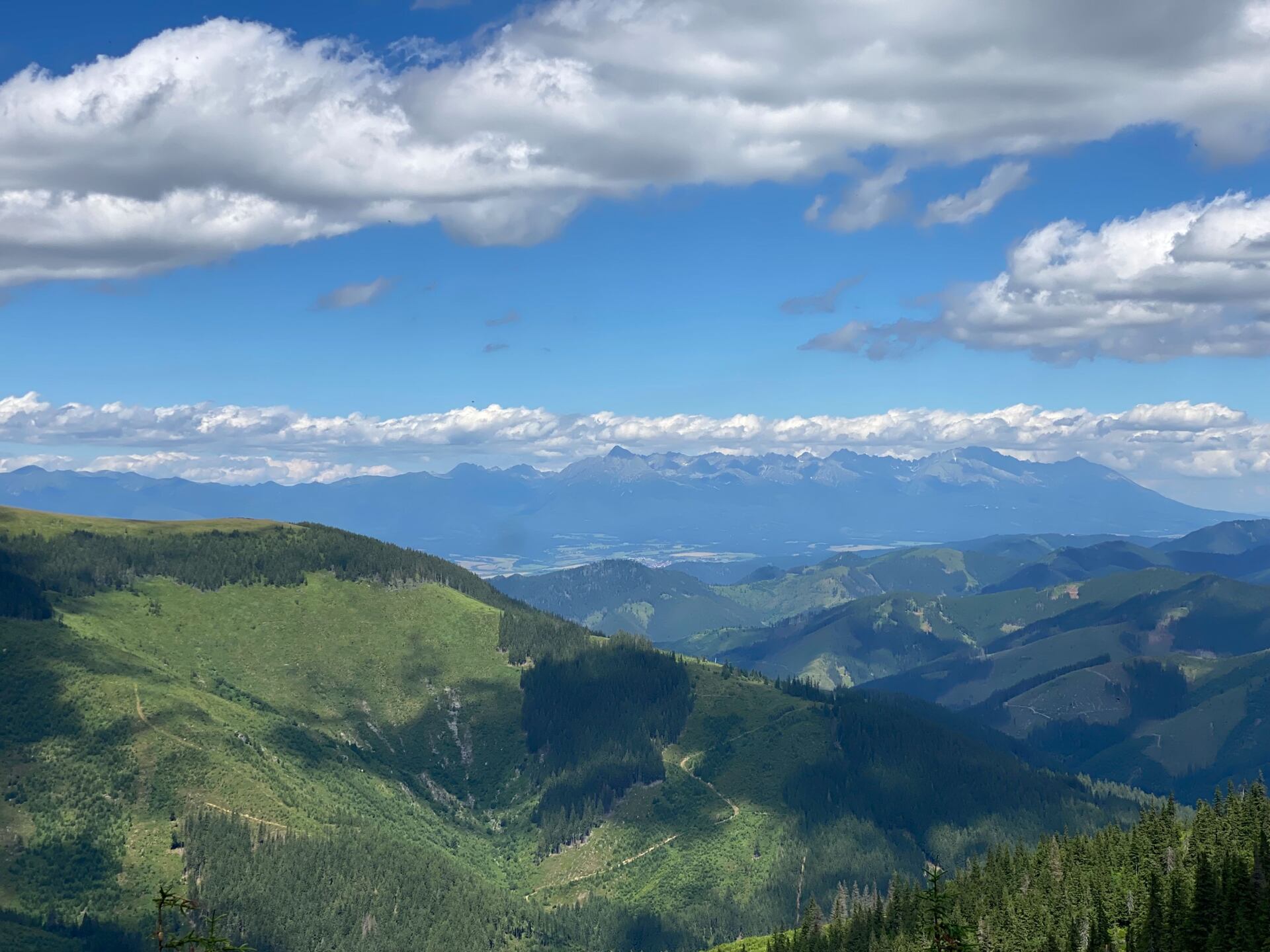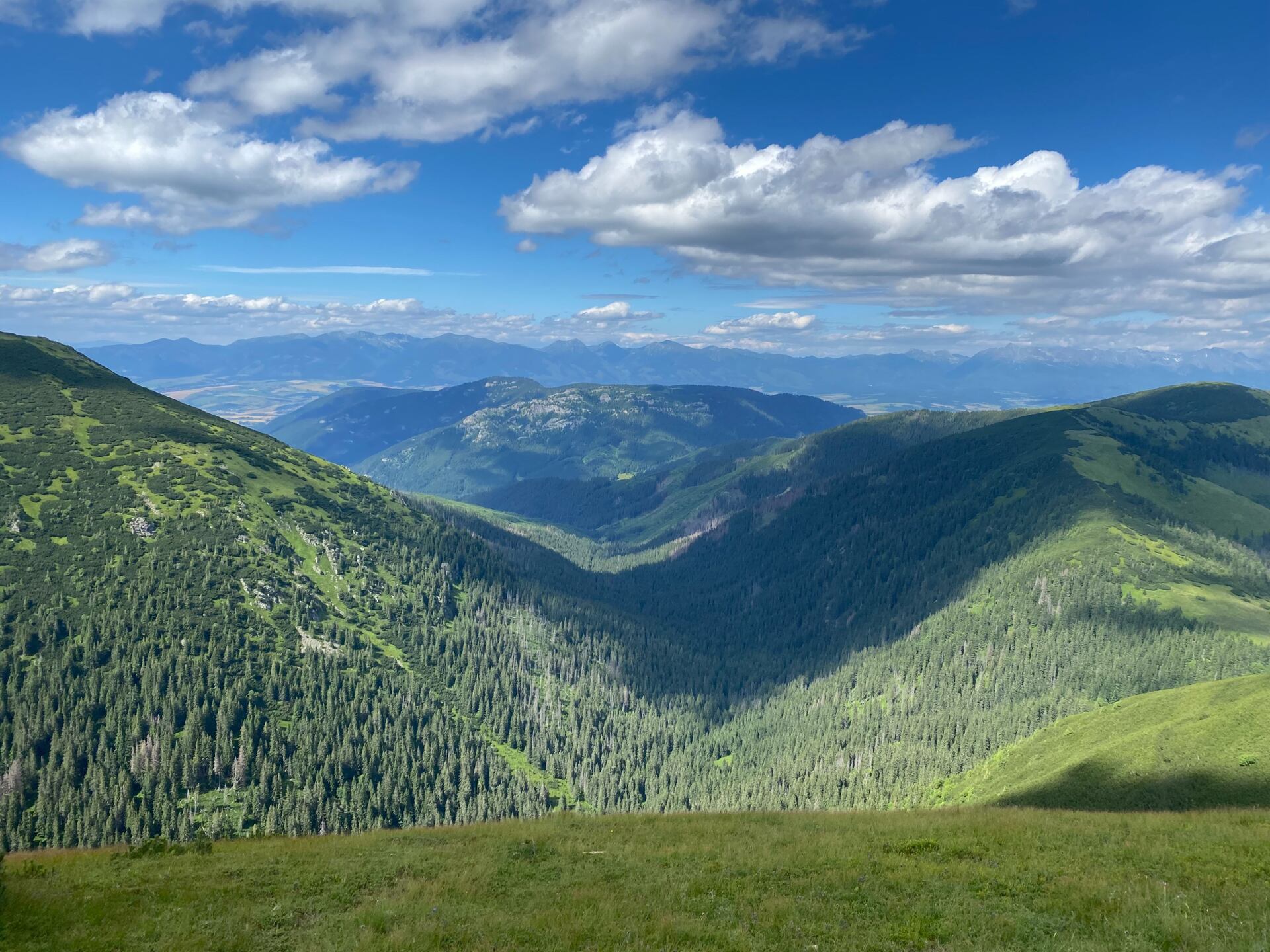 Výhledy nás ale doprovází téměř až k útulně Andrejcová. My jsme si pro jistotu dopředu udělali rezervaci (10€ se snídaní) a už si objednáváme kapustnicu (zelňačku) a vychlazené pití. Líbí se mi, jak po cestě i u útulny vykukují Vysoké Tatry – tam jsem byla vloni, říkám si! Útulna se rychle plní a my jdeme spát. Spaní v lůžkovém vlaku je sice fajn, ale neustálým buzením jsme spánku moc nedali.
