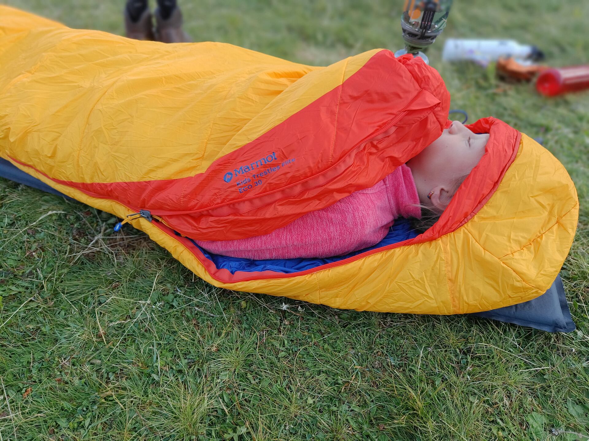 Zatím jsme se spacákem Marmot Kids Trestles Elite Eco 30 Kids opravu maximálně spokojení. Výrobci bych doporučil snad jen přidat další barevnou kombinaci, aby se děti doma ve finále nehádaly, který spacák patří komu. Předpoklad, že budeme pořizovat další, se rovná téměř jistotě. Ale barva je opravdu maličkost, kterou vyřeší různě barevné „mašličky“ na viditelných místech.