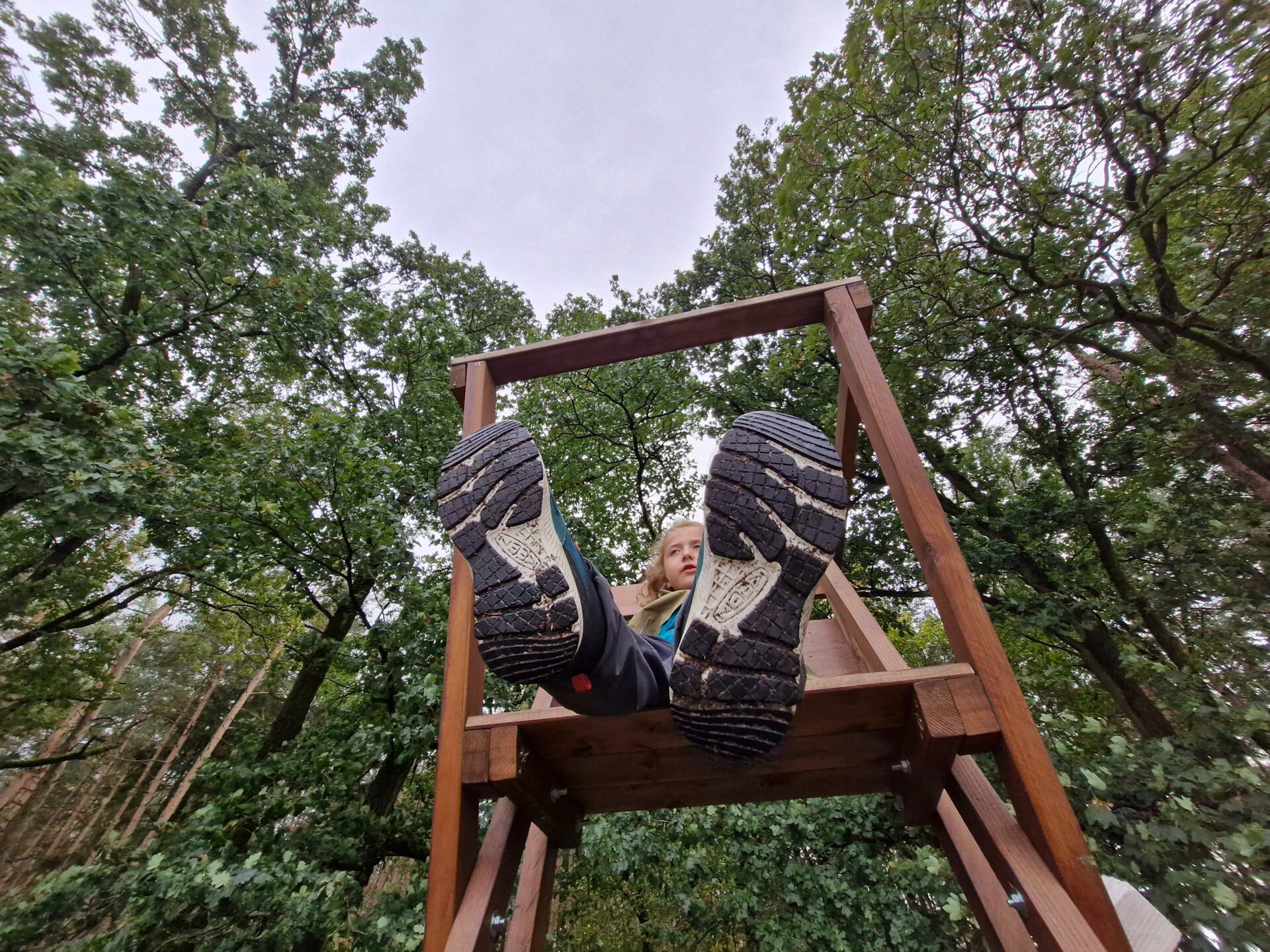 Odpoledne jsme vyrazili do přírody. Bylo právě po vydatném dešti, takže ideální podmínky na zátěžový test. Syn s nadšením lezl na posedy, zkoušel stabilitu na přírodních překážkách, jako jsou spadlé kmeny stromů, kameny a menší svahy. Bota si vedla skvěle – podešev je dostatečně členitá na to, aby boty nepodkluzovaly ani na mokrém a blátivém povrchu. Navíc konstrukce boty je flexibilní, takže noha zůstává dobře stabilní i v terénu.