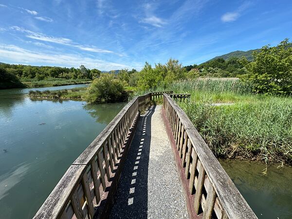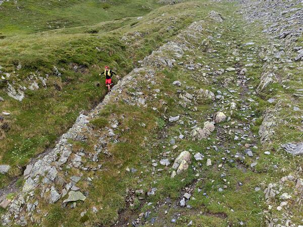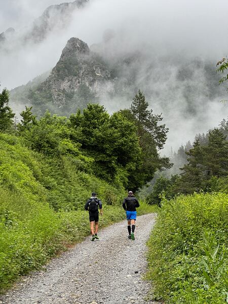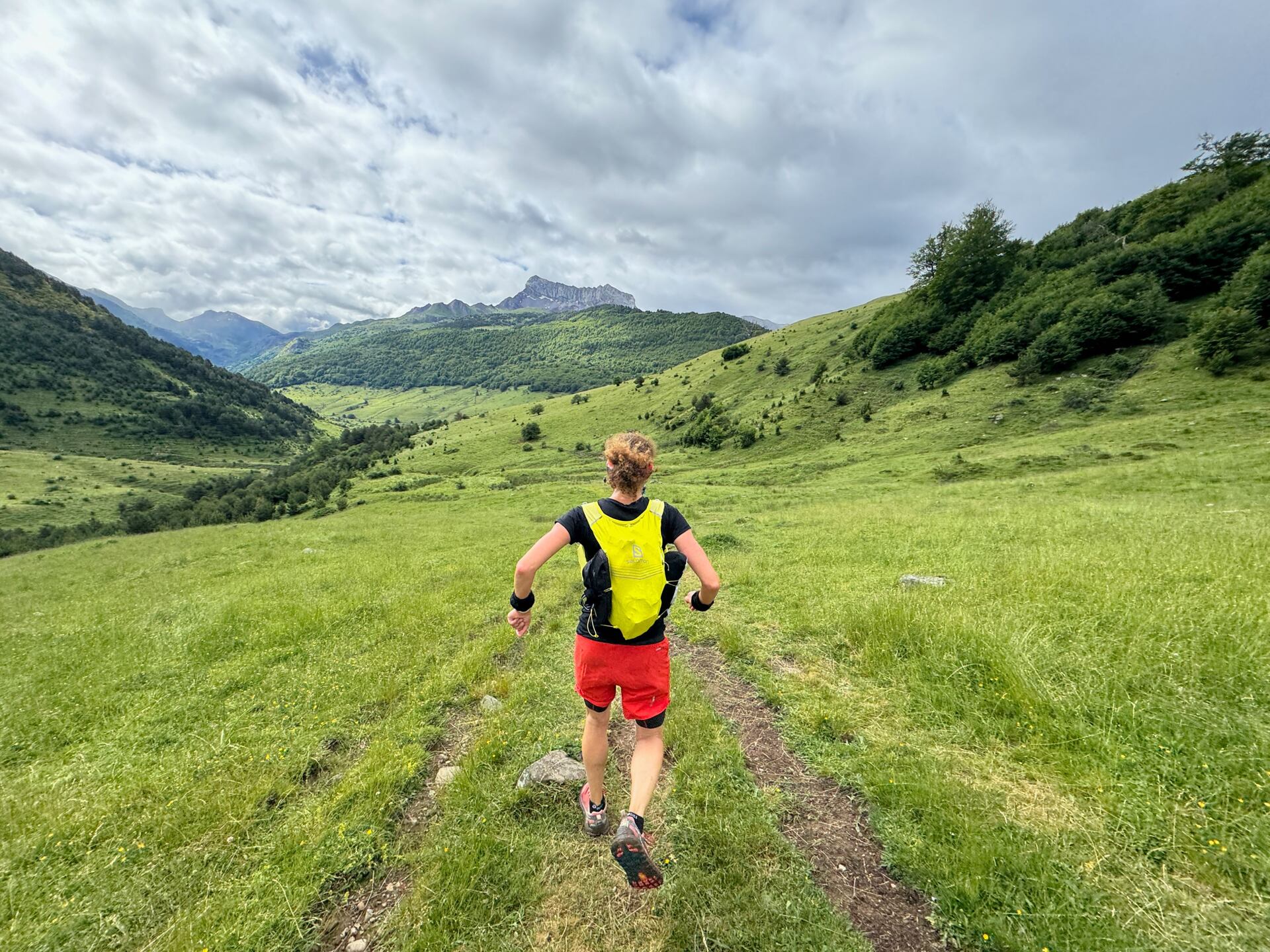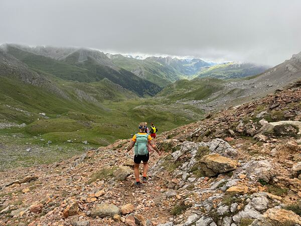 Překonáváme fotogenické mokřady u pramene řeky Aragón Subordán a z měkké hliněné podložky se začíná stávat kámen a skála. Zpomalujeme, protože je cesta čím dál tím více techničtější. Netrvá dlouho a přebíháme na francouzskou část trailu protínající Národní park Pyreneje.