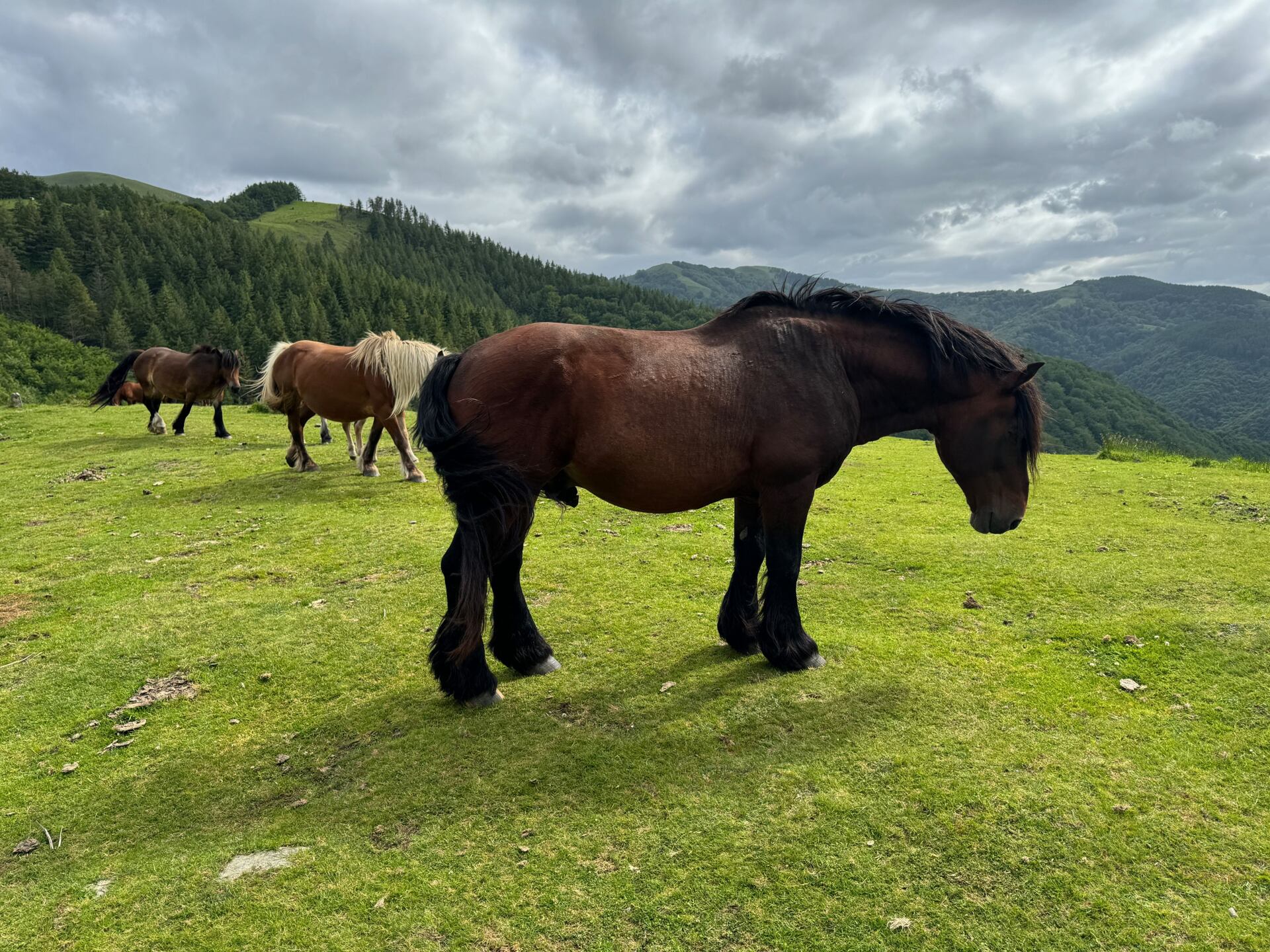 Jakmile člověk vystoupá na horský hřeben, naskýtají se mu nádherné výhledy. Nekonečné louky se siluety volně se pasoucích koní a v dálce před námi siluety třítisícových hor.