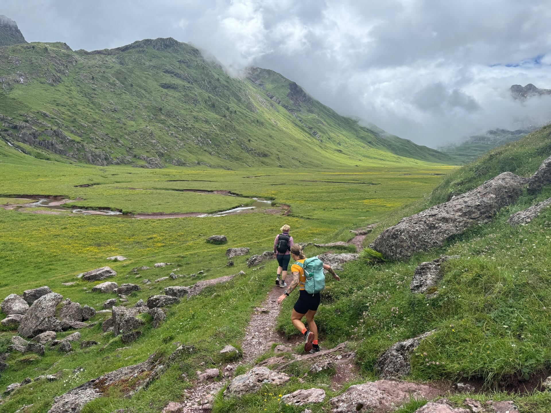 Je sympatické, že při zdolávání GR11 má člověk pár dní na rozkoukání, než se dostane do těch opravdu náročných technických pasáží a většinu času tak trávíme na travnatých hřebenech hor.
