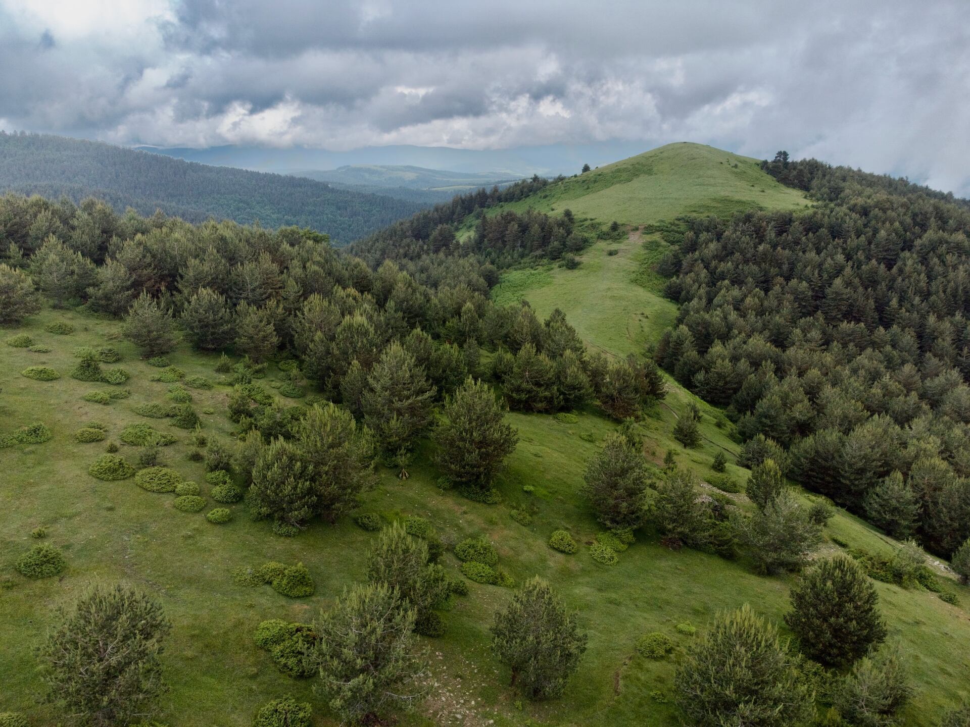 Většina dnešní trasy se vine v lese a po travnatých hřebíncích ve výšce kolem 1 500 metrů. Fouká vítr a do toho pálí slunko, což je ideální kombinace na spálení. Nepřestává mě udivovat, že je tu stále minimum kamenů a cesty nejsou téměř vůbec technicky náročné.