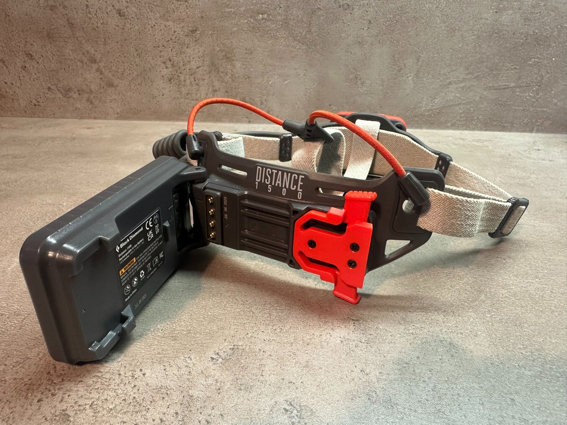 Prakticky každý závod, který je přes noc, baterii měním. Akumulátor se připevňuje pomocí magnetických páček na jednom konci a zacvakávacího klipu na druhém konci. Vyjmutí baterie je jednoduché, stačí stisknout dvě páčky, které klip uvolní a poté odepnout magnet. Nový akumulátor se zasune do magnetu a zatlačí se do svorky. Tahle akce nevyžaduje žádnou sílu ani příliš velkou přesnost a po troše cviku se dá zvládnout vše jednou rukou i v rukavicích, aniž by se musela čelovka sundávat z hlavy.