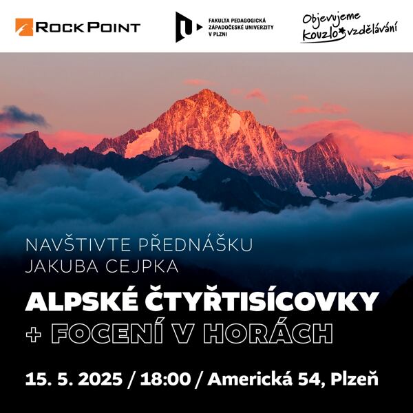 Ve spolupráci s Fakultou pedagogickou Západočeské univerzity v Plzni pořádáme přednášku Jakuba Cejpka na téma horských výstupů.