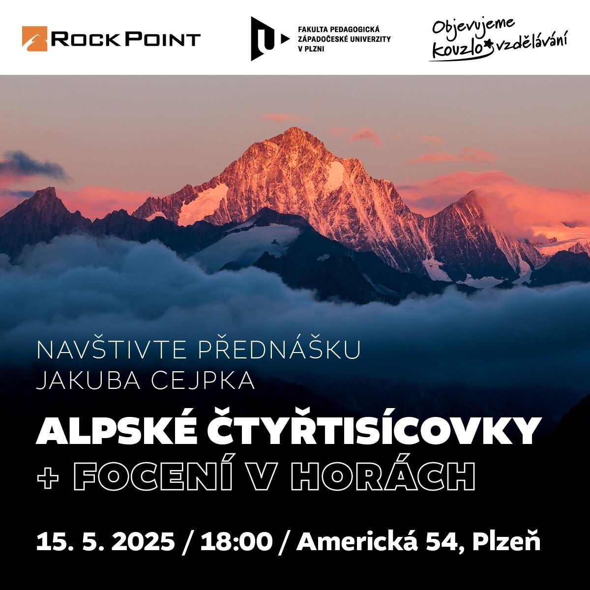 Fotograf, horský průvodce a člen Rock Point týmu Jakub Cejpek vás zavede do všech koutů Alp, od švýcarské Berniny po francouzské Écrins. Povvypráví o normálkách i náročnějších liniích, letních i zimních výstupech nebo i o tom, jak se cestuje na čtyřtisícovku stopem. Odhalí také tajemství focení v horách, aneb kam až zajít pro pěknou fotku.