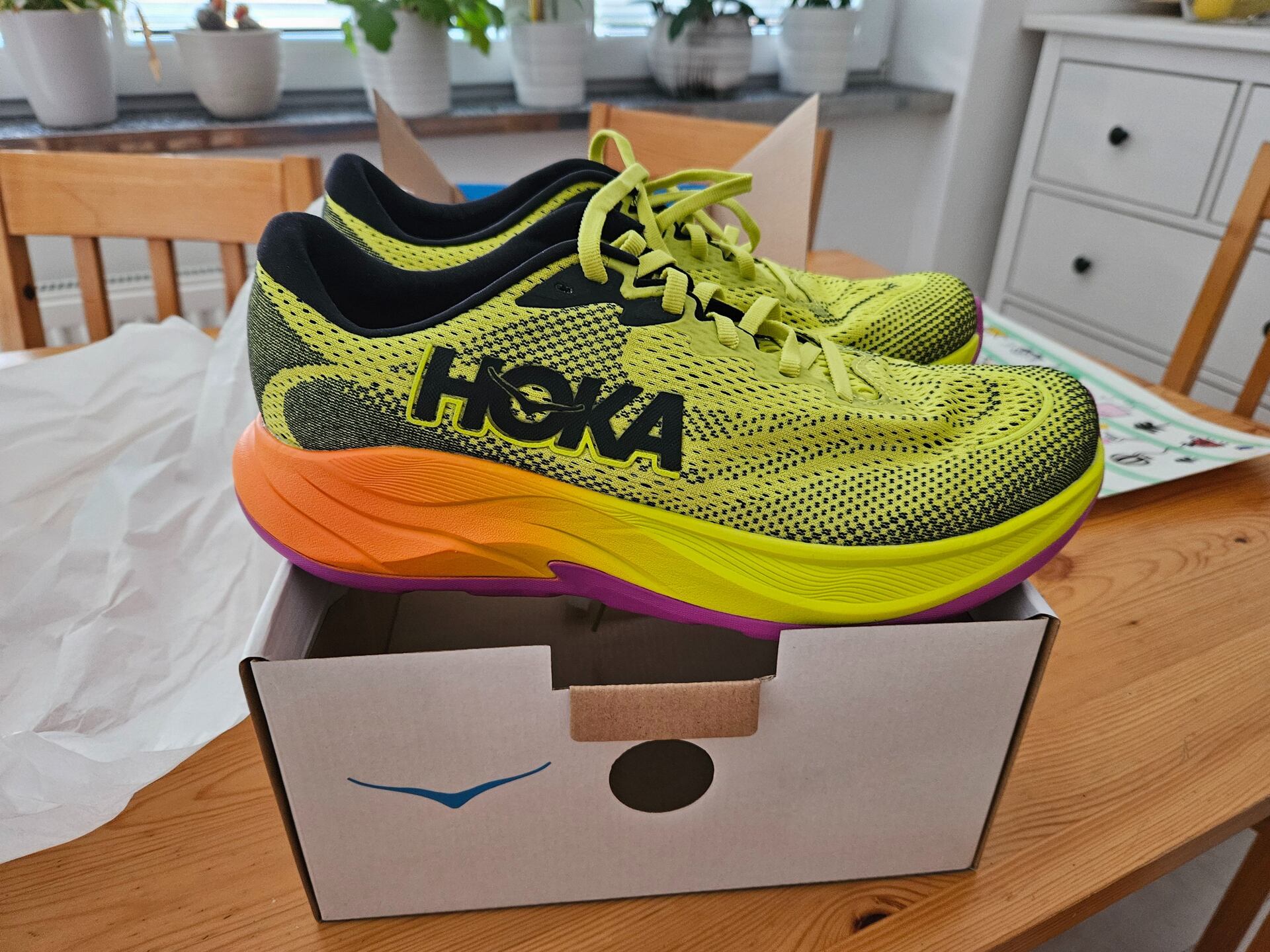 Při prvním pohledu na boty jsem byl lehce zmatený z velmi extravagantních barev. Říkal jsem si, s jakým oblečením je sladím, jelikož mám rád spíš jiné barvy, ale Hoka si na výstřední barvy potrpí, takže proč vlastně ne? Na druhou stranu, proporce Hoka vypadají velice dobře, takže proč na ně neupozornit.
