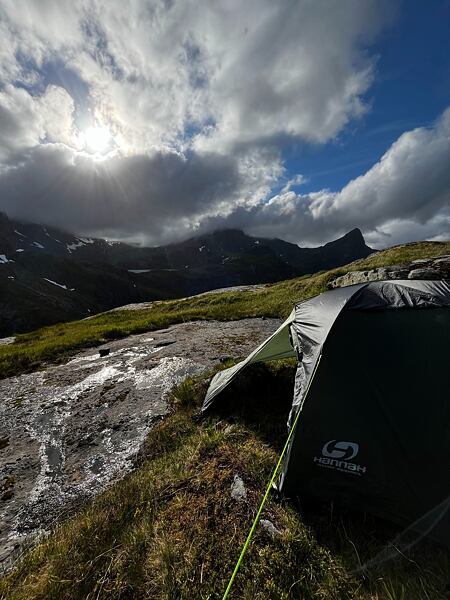 Nutno podotknout, že počasí nám dávalo hned od prvního dne opravdu zabrat - měnilo se z minuty na minutu (stejně jako pak naše plány) a velkou část dnů doprovázel hustý déšť a silný vítr. Cesty se proměňovaly v močály a málokdy se nám podařilo zakončit se suchou botou. Proto byl velkou oporou stan Hannah Covert 2WS, na který jsme se mohli pokaždé spolehnout a který byl spolu s ponožkami od značky Smartwool tou nejzásadnější součástí naší výbavy. Obrovským překvapením byla také bunda Hannah Goldie, ohledně jejíž nepromokavosti jsem původně neměla příliš velká očekávání.
