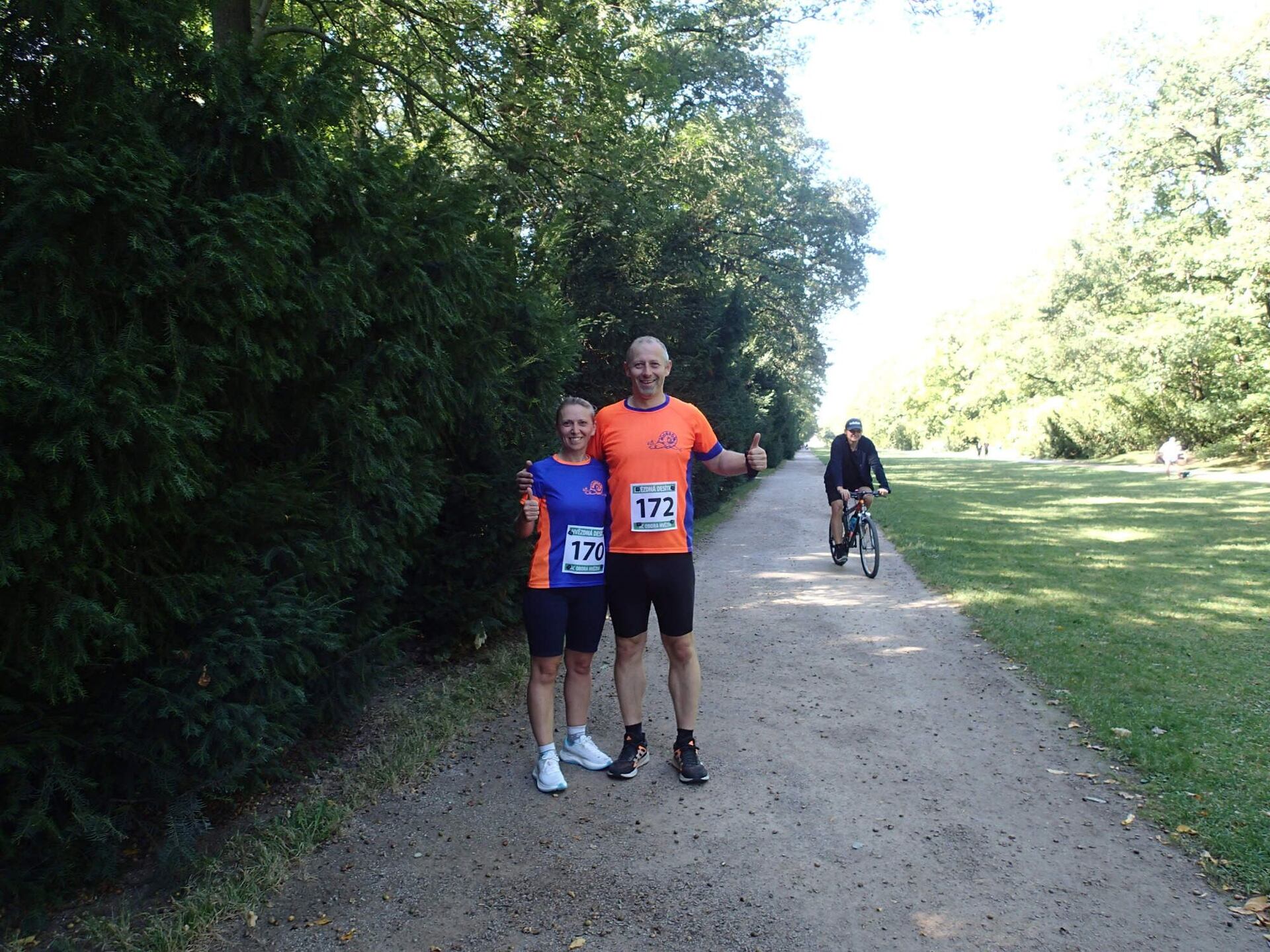 V cíli mého půlmaratonu s manželem - Běh pro hospic Milovice 2024