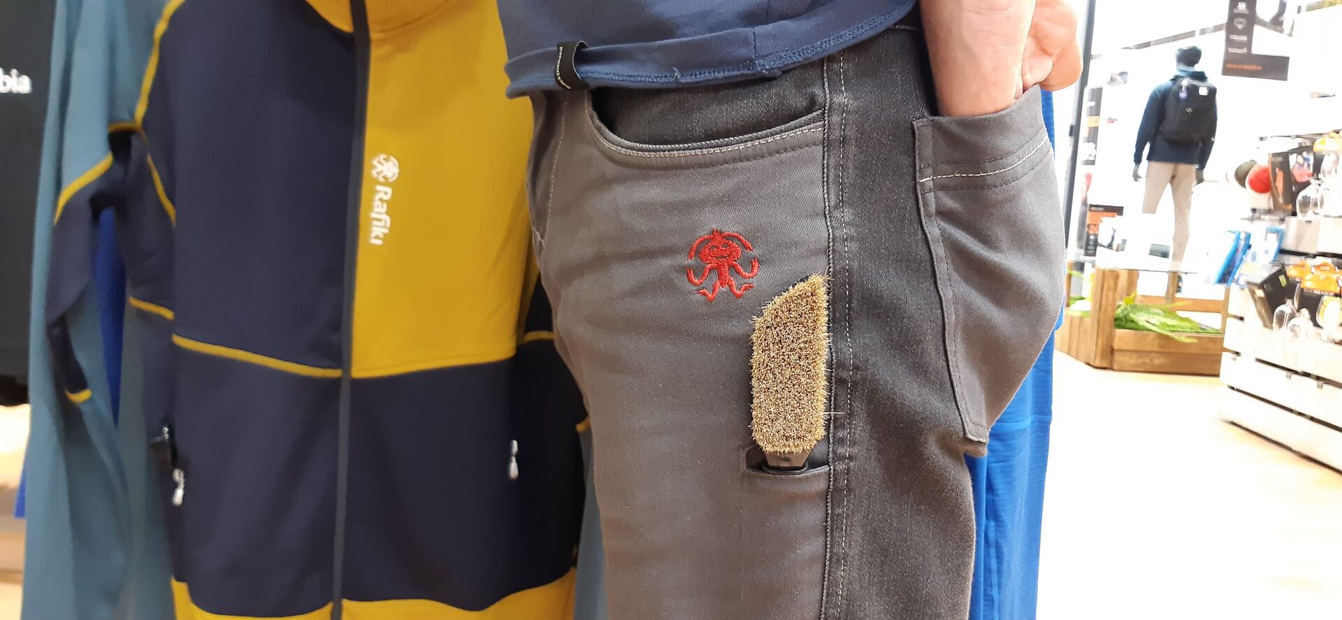 Zajímavým detailem, který o vás hodně prozrazuje, a který by vás mohl zaujmout, je ozdobení v podobě malých „Rafikáčků“. Jeden je umístěn vpředu na levé kapse a ještě jeden vzadu na pravé nohavici. Na zadní kapse pak vynikne nápis „Rafiki climbing“.