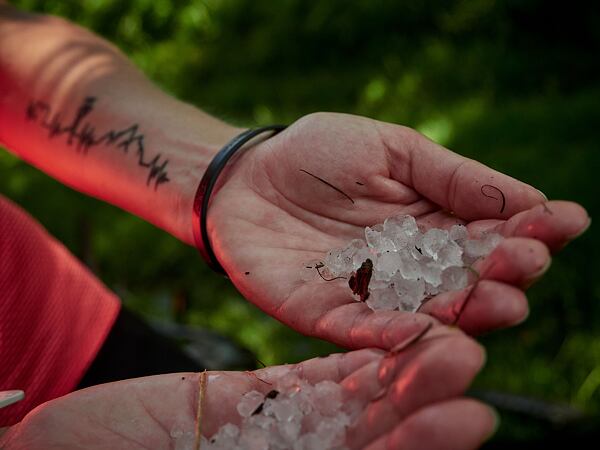 V Novém Městě jsme se opět napojili na červenou a běželi na rozcestí Vrch Tří pánů. Tady jsme se poplácali po zádech, jak jsme měli dobrý nápad zdržet se v Cínovci na oběd, protože všude kolem nás byly rozseté kroupy. Z rozcestí jsme pokračovali opět po červené směr Vilejšov – zaniklá obec. Tohle je podle mě jeden z nejkrásnějších trailových úseků etapy. Lepší požitek z terénu byl umocněn množstvím vody, ledových krup na cestičkách a do toho už zase začalo krásně svítit sluníčko.