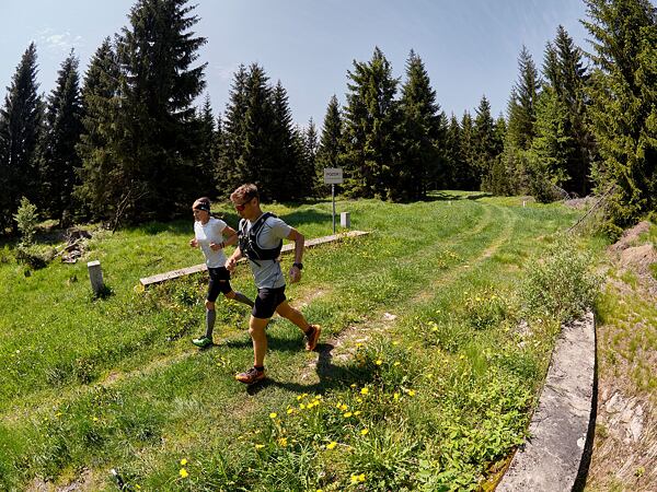 Ze zámečku Lichtenwald valíme směr Jelení hlava a poté vrchol Pestrý (875 m n. m.) a už se moc těšíme na Colu, Vysočinku a další dobroty na občerstvovačce v Nové vsi, kterou nám zajišťuje Kája (dvorní logistik) a Krab (autor celé přeběhové myšlenky). Všichni se zrelaxujeme a posilníme na další dávku kilometrů.