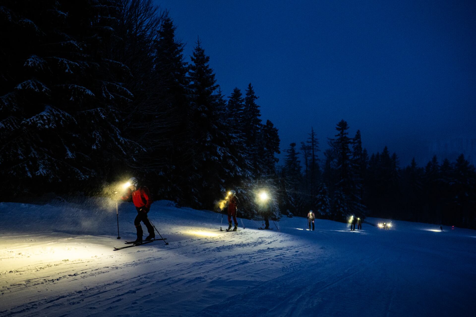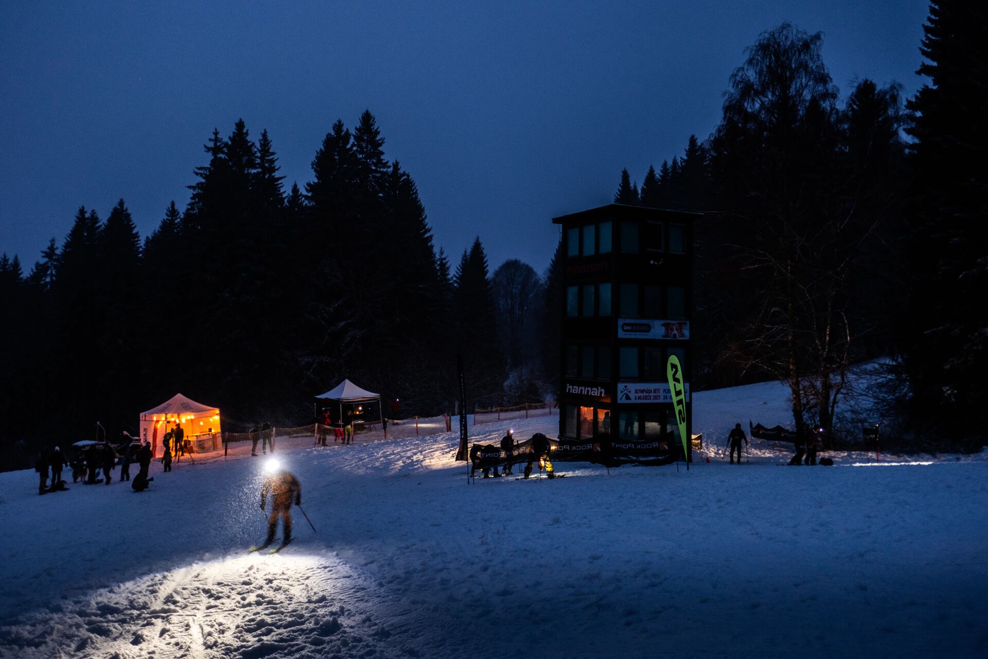 Skialpový hobby závod Rock Point Šumavský rys 2026 sice odstartoval za světla, ale do cíle i do druhého kola šlo mnoho závodníků už za tmy